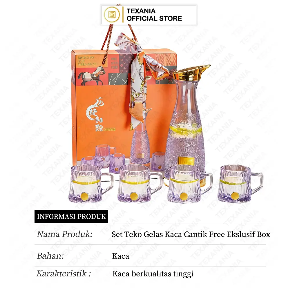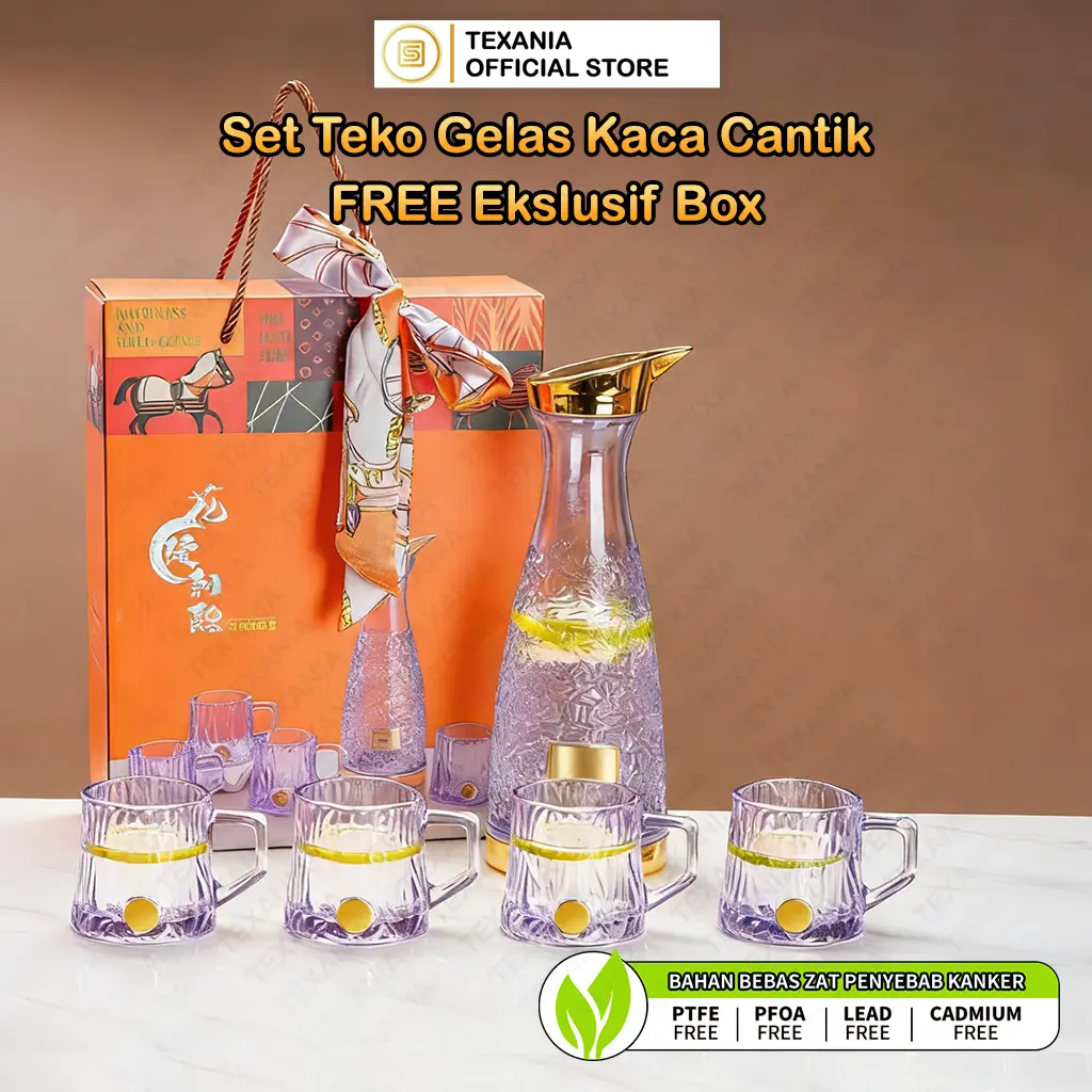 ️ TEXANIA Set Teko & Gelas Kaca Cantik Premium