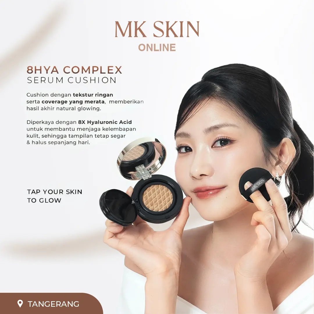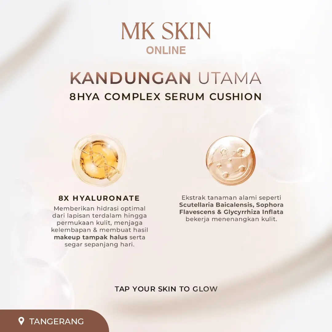 MK SKIN 8HYA Complex Serum Cushion adalah cushion dengan tekstur ringan serta coverage yang merata memberikan hasil akhir natural glowing. Diperkaya dengan 8X Hyaluronate untuk membantu menjaga kelembapan kulit, sehingga tampilan tetap segar dan halus sepanjang hari.