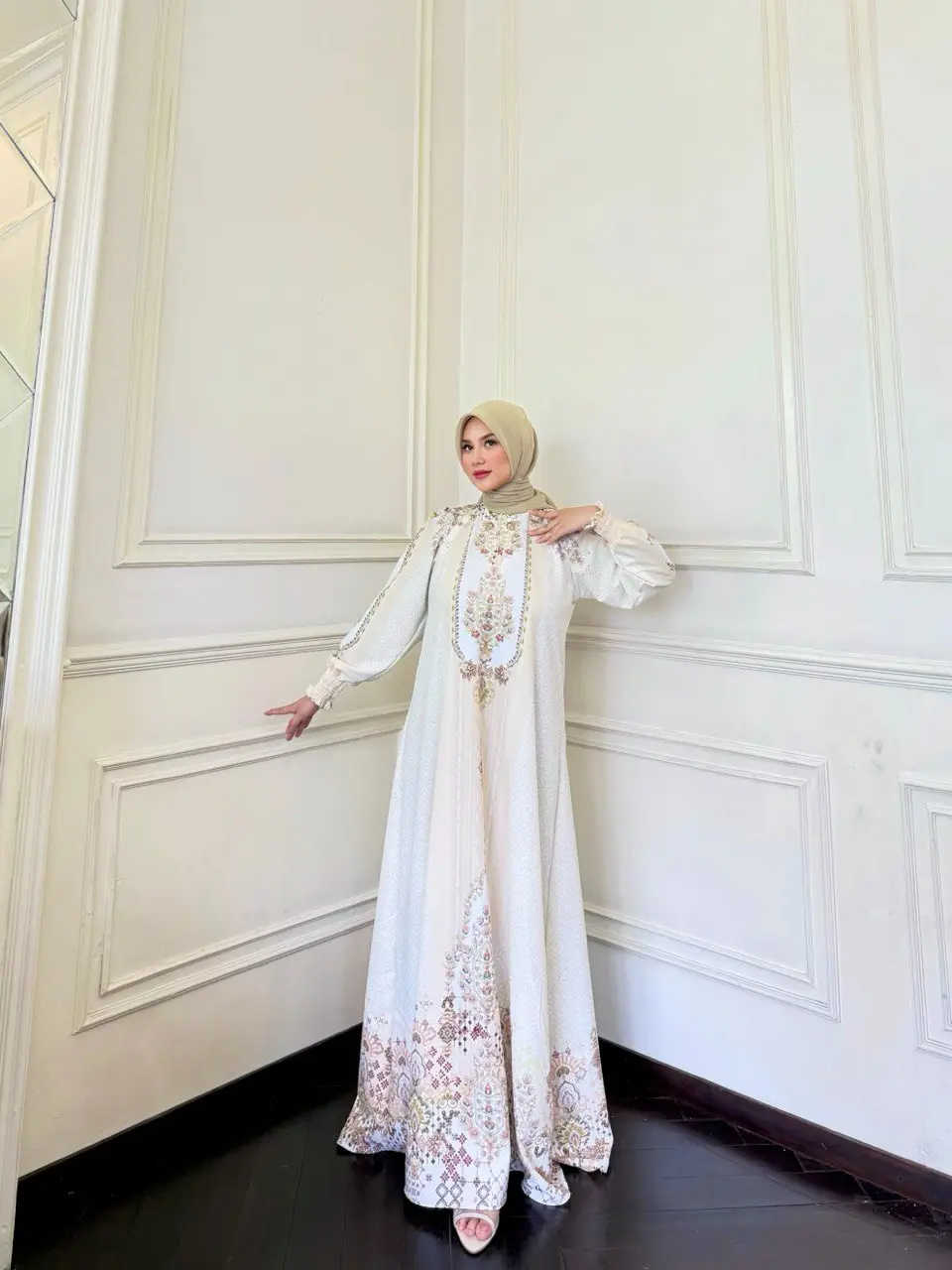 Dibuat dari bahan premium berkualitas tinggi yang lembut, adem, dan jatuh sempurna, gamis ini memberikan kesan mewah tanpa mengorbankan kenyamanan. Detail jahitan rapi dengan potongan modern membuat siluet tampak lebih anggun dan menawan.
