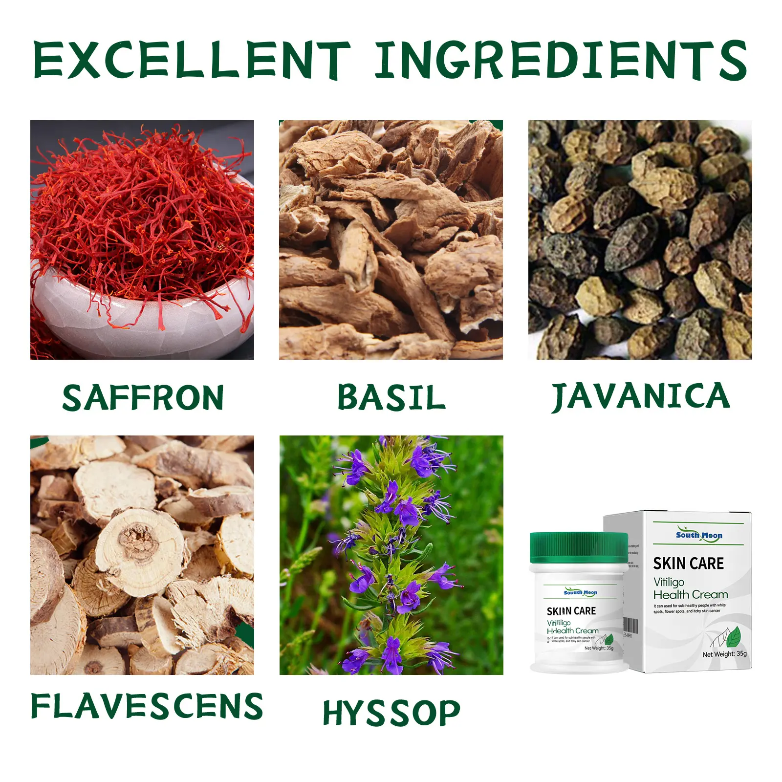 Krim perbaikan kulit kami mengandung saffron, baibuhu, dan gallnut. Ini dapat membantu meningkatkan keseimbangan fisiologis melanosit dan keratinosit di epidermis vitiligo. Melalui formula Nature-nya, produk ini mengatur pigmentasi kulit, mengatur pigmentasi, memperbaiki vitiligo, dan mendorong restorasi melanin. Cara penggunaannya sangat sederhana: pertama, cuci kulit Anda dan keringkan; kedua, aplikasikan secara merata pada kulit dan pijat untuk penyerapan; ketiga, teruskan menggunakannya untuk jangka waktu tertentu, dan efeknya akan sangat baik. Ini juga tidak menyebabkan iritasi pada kulit dan meresap dengan cepat.