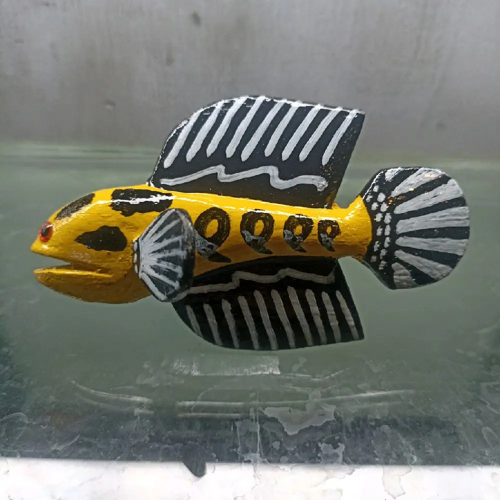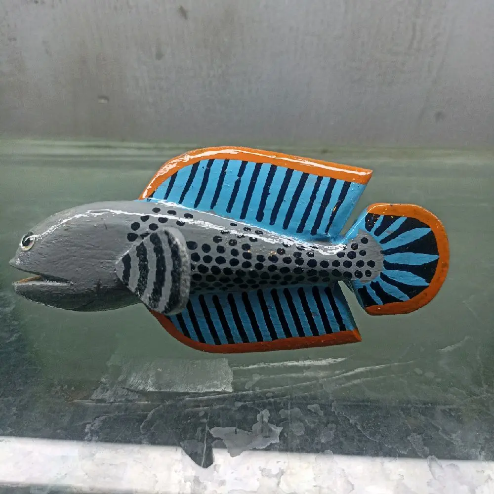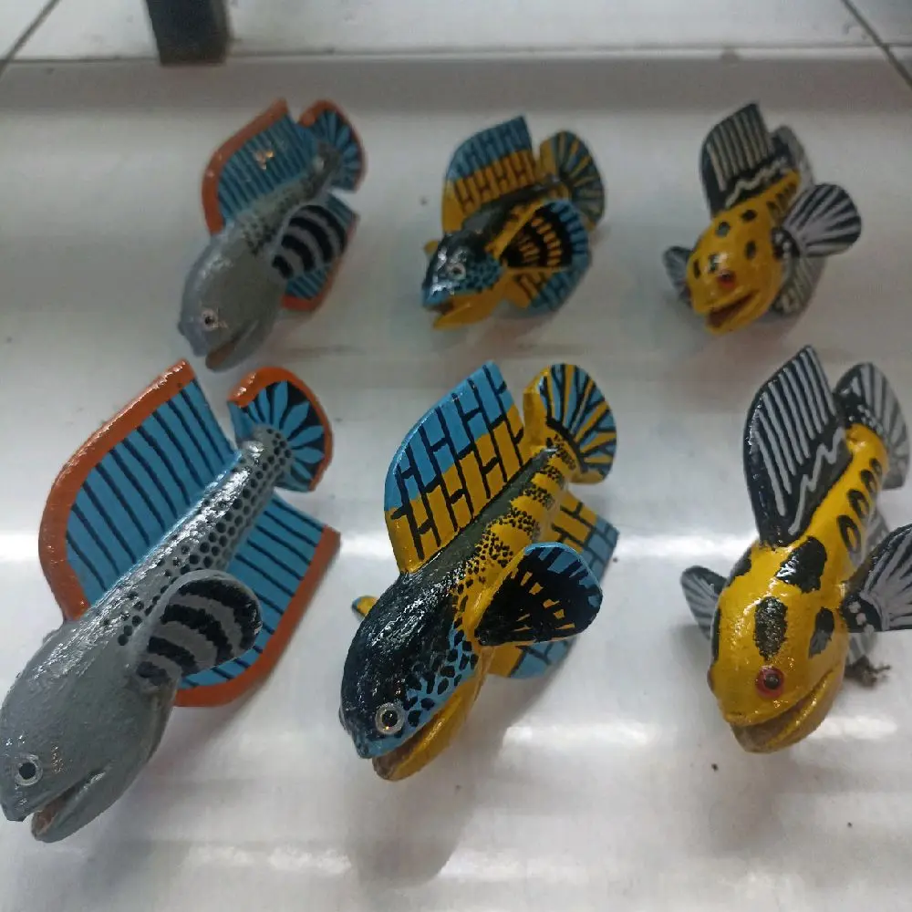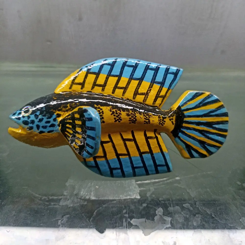 Mainan Patung Channa Mangap Full Kayu dengan Desain Warna-warni dan Detail Ikan yang Menarik