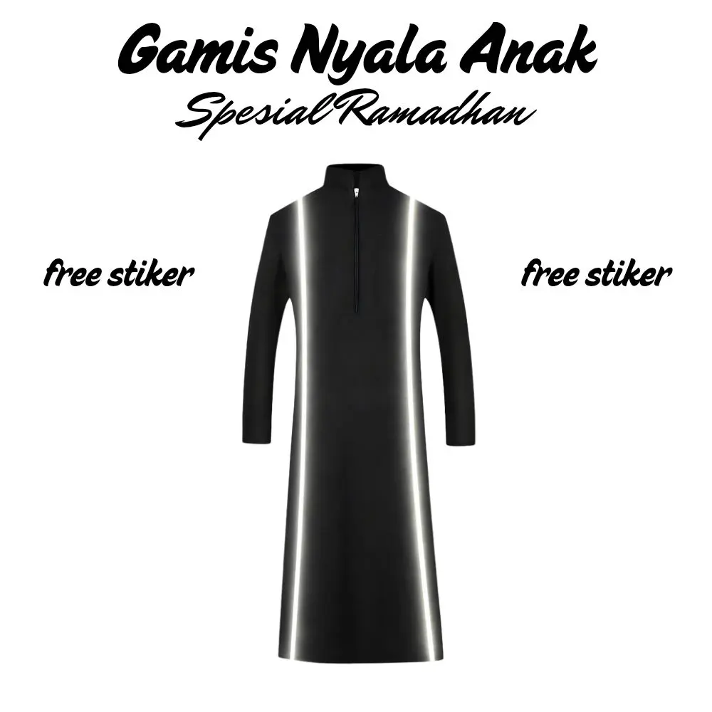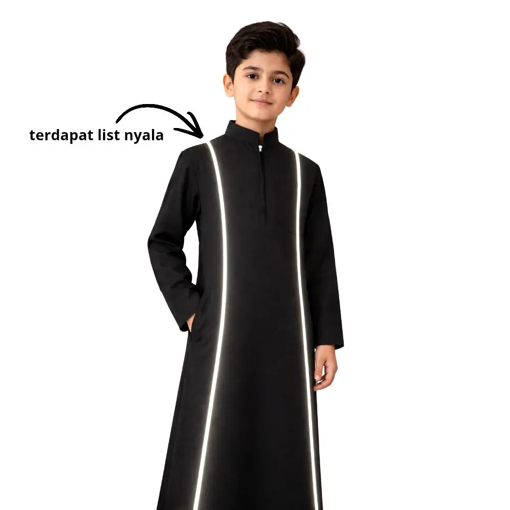 Gamis Jubah List Nyala Anak Laki Laki Umur 9-16 tahun Hitam Lengan PanjangGamis Jubah List Nyala Anak Laki Laki Umur 9-16 tahun Hitam Lengan Panjang