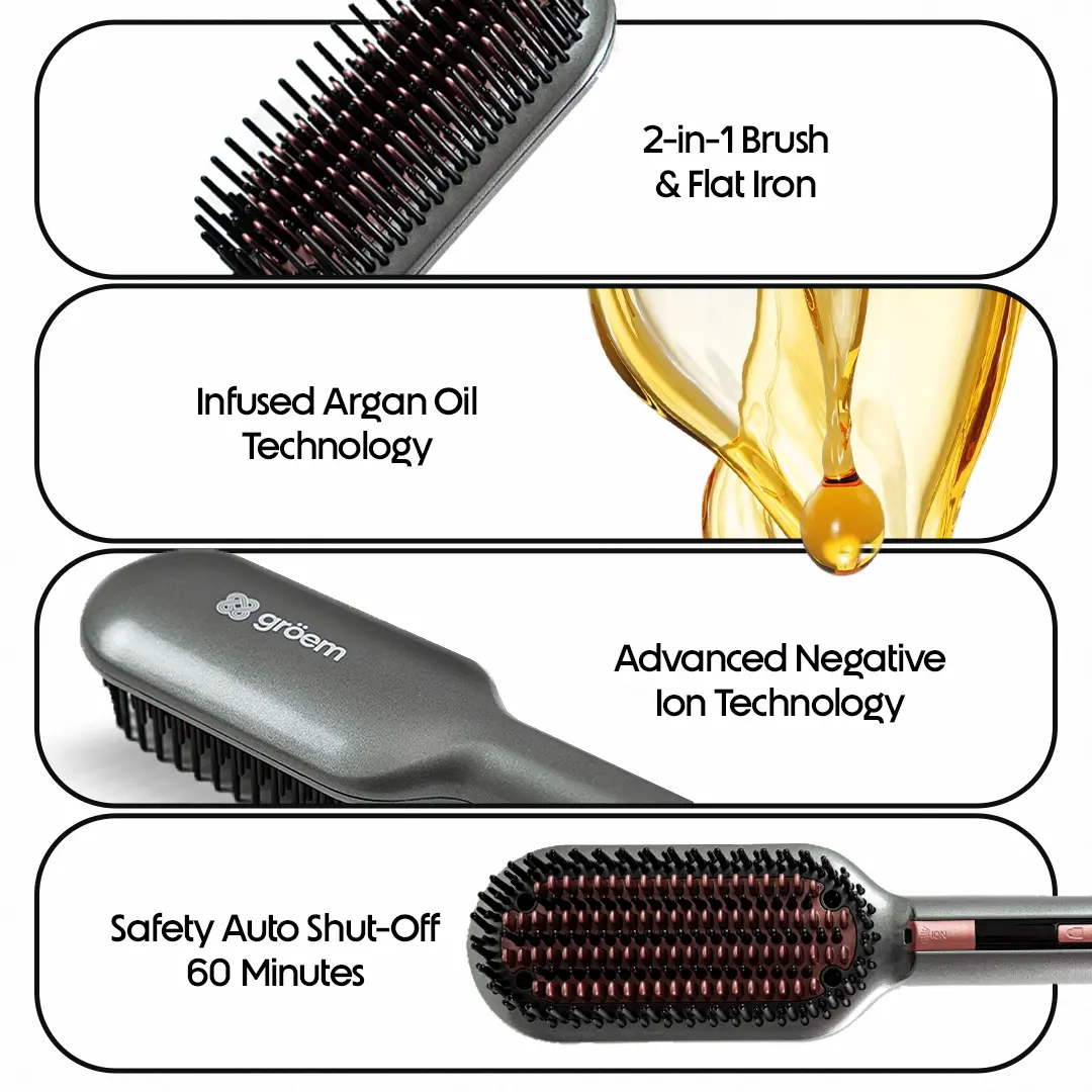 ·2-in-1 Brush & Flat IronMenggabungkan fungsi sisir dan catokan dalam satu alat untuk styling yang lebih praktis dan mudah digunakan.