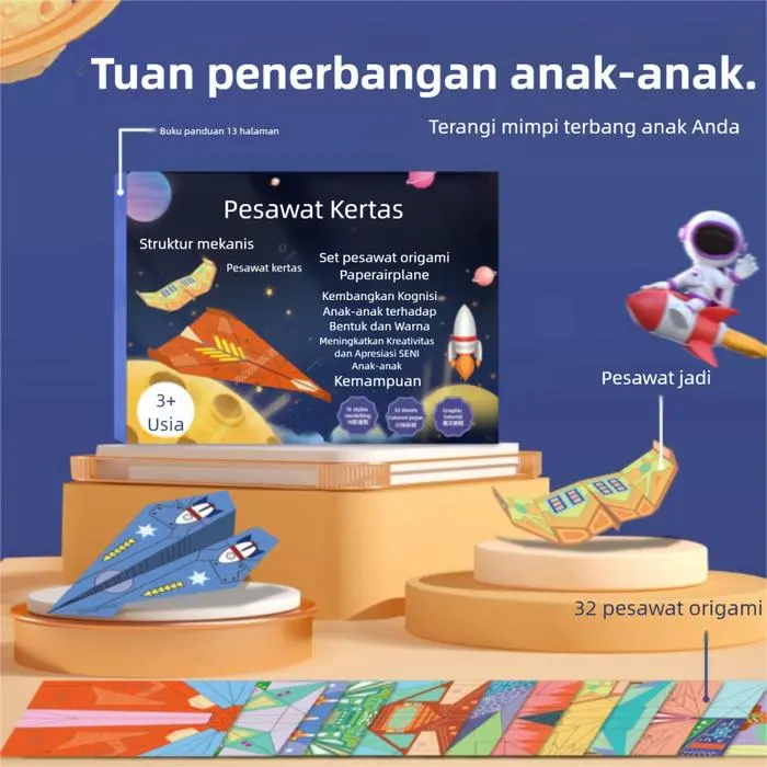 Mainan Pesawat Origami - Mainan Pendidikan untuk Anak-Anak - Origami AirplanesModel ini termasuk pesawat kertas, terbang jauh, tinggi, dan mudah dilipat. Cocok untuk aktivitas STEM dan permainan luar ruang.