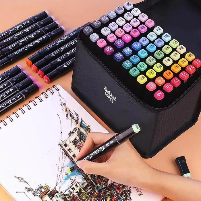 5. Spidol berbahan dasar minyak ujung ganda untuk lukisan anak-anak pena cat air 24-80 warna set pensil cat air lengkap 2 in 1 Markers Art Pen Plastik Stationery | Kekinian