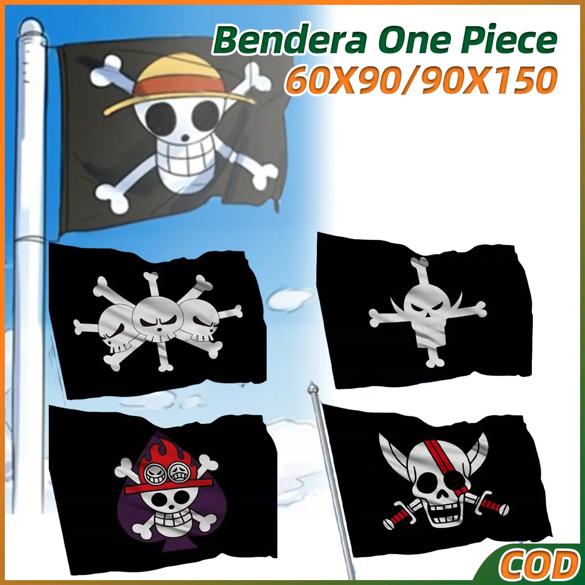 5. Bendera One Piece Terbaru 2026 Kain Bendera Luffy Besar Kecil Printing HD One Piece Ukuran 90x60 & 150x90cm Bendera One Piece 5 Model Satin Polyester Bendera One Piece