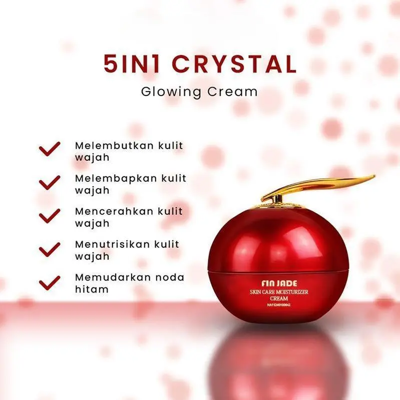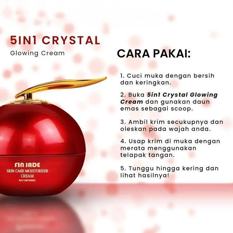 5IN1 Crystal Glowing Cream ini sudah mengandung 5 formula sekaligus, yang membuat kulit wajah lebih cerah, melembabkan, dan dapat mencegah penuaan dini.