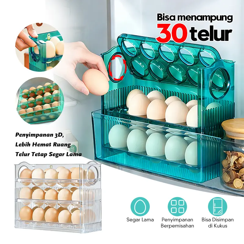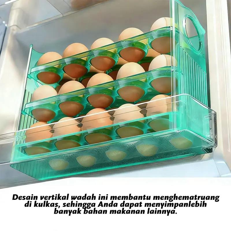 Desain 3 tingkat, bisa muat ±30 butir telur