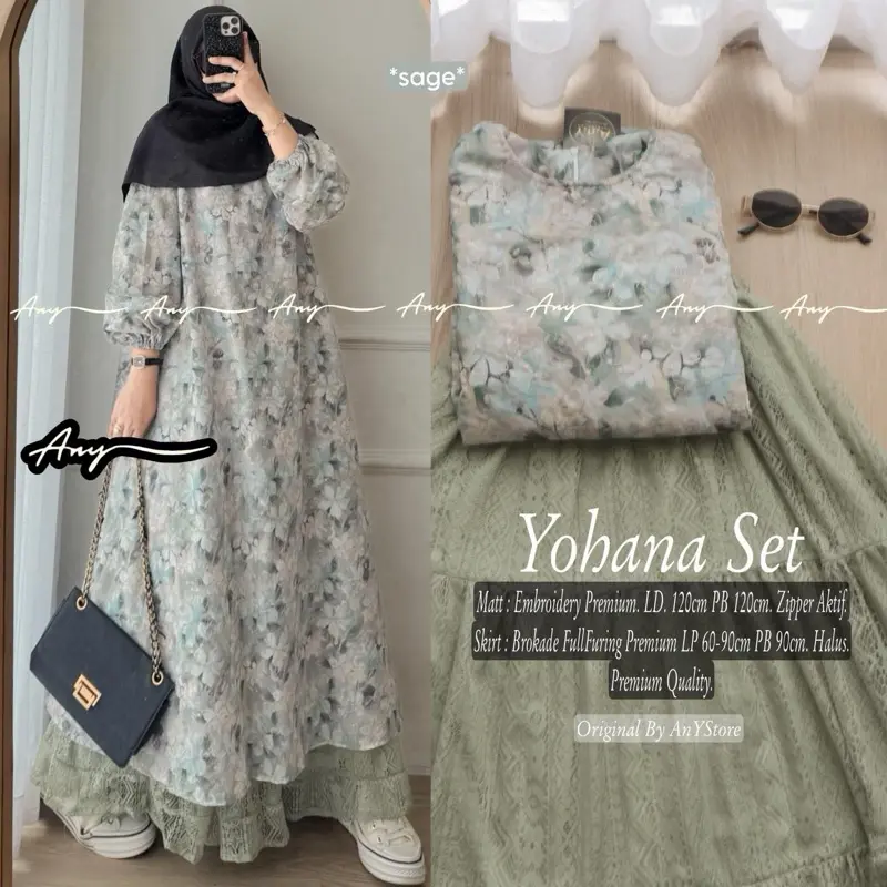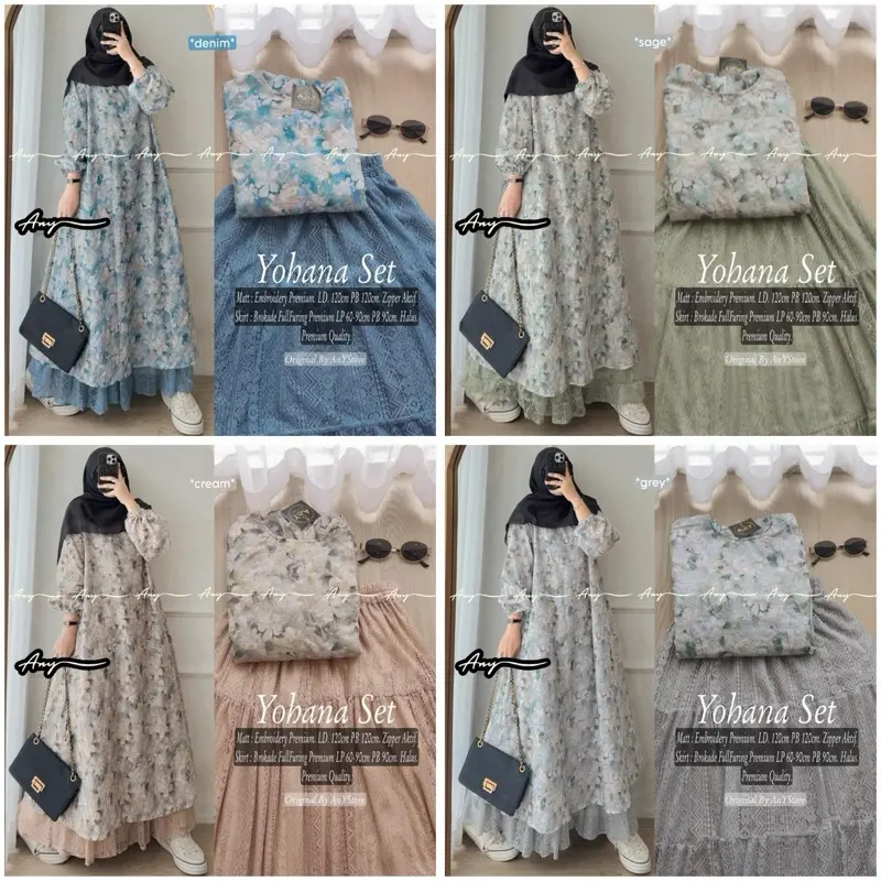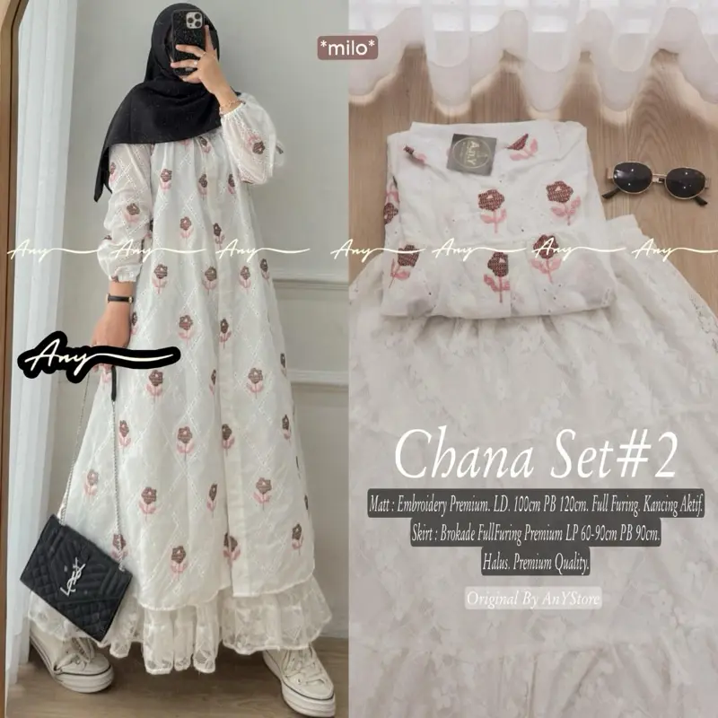 One Set Tunik Embroidery Rok Bruklat Raya Series Setelan Wanita Lebaran Zoya Rika Yohana Chana Kloe Erwina Muslim