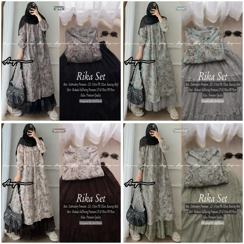 5. One Set Tunik Embroidery Rok Bruklat Raya Series Setelan Wanita Lebaran Zoya Rika Yohana Chana Kloe Erwina Muslim