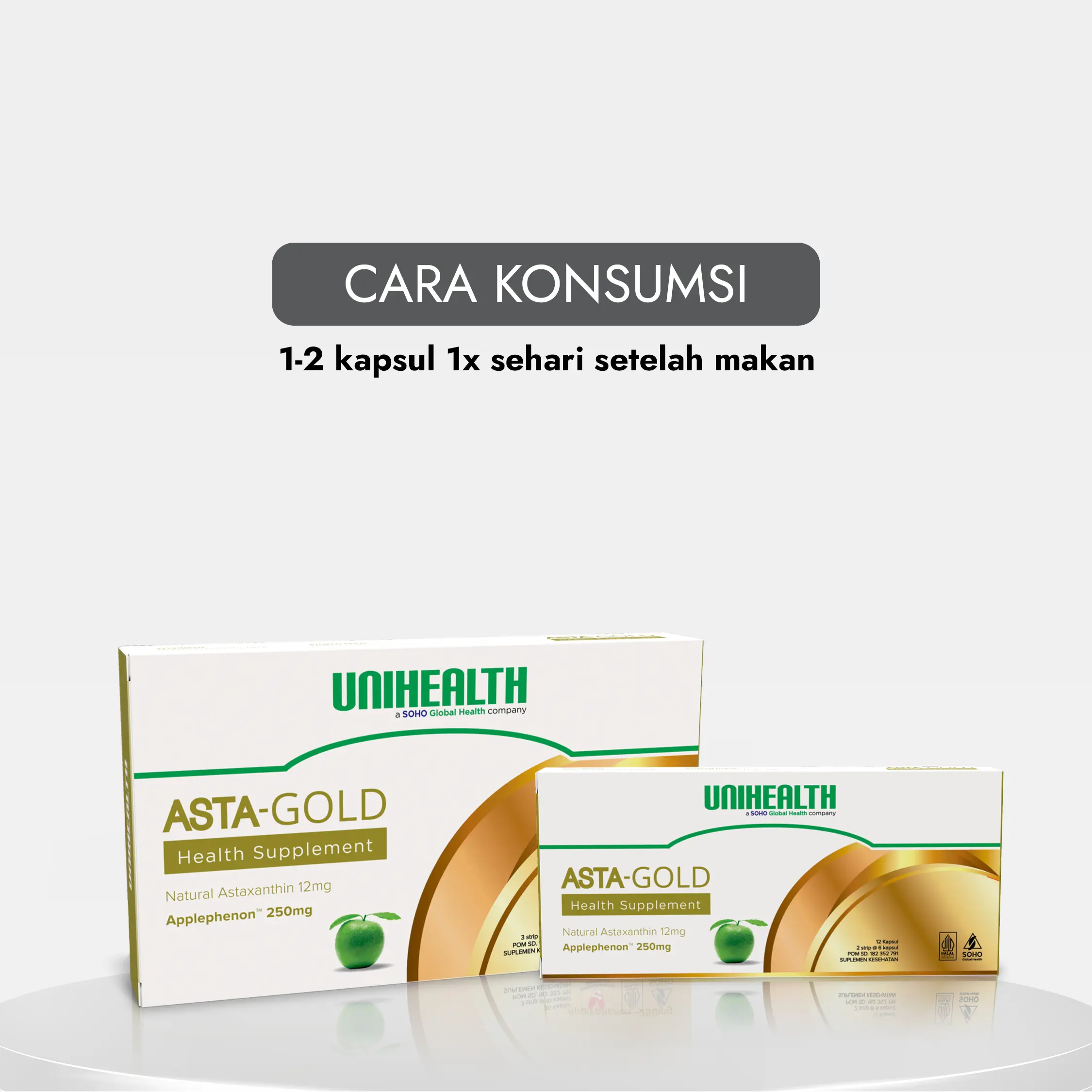 1–2 kapsul, 1 kali sehari setelah makan, dikonsumsi secara rutin.
