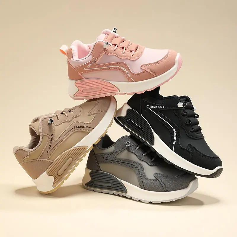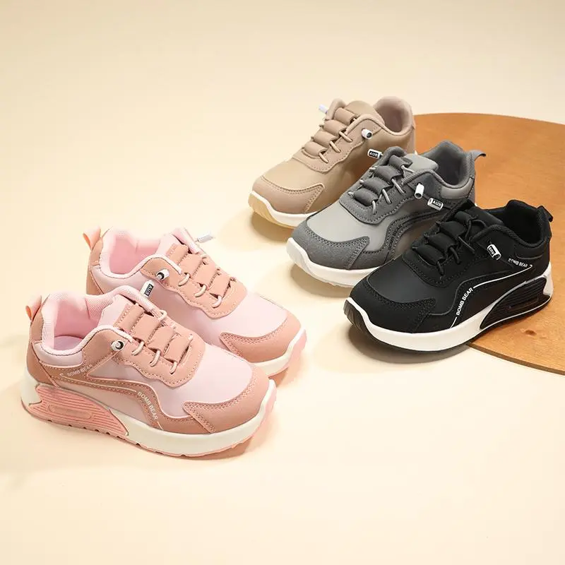 MOONBEAR ~6308~ Sepatu Sekolah Anak Dengan Fashion Sneakers Mesh Sintetis Premium, Kualitas Nyaman Lentur Ringan Desain Ergonomis untuk Aktivitas Aktif Si Kecil! warna Hitam, Pink, Khaki dan Abu dengan size 26-37
