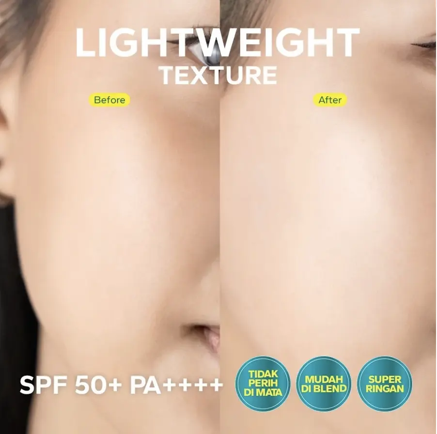 1. Aplikasikan sejumlah 2 jari ke seluruh wajah secara merata di tahapan terakhir skincare, sebelum makeup atau 15 menit sebelum terpapar sinar matahari