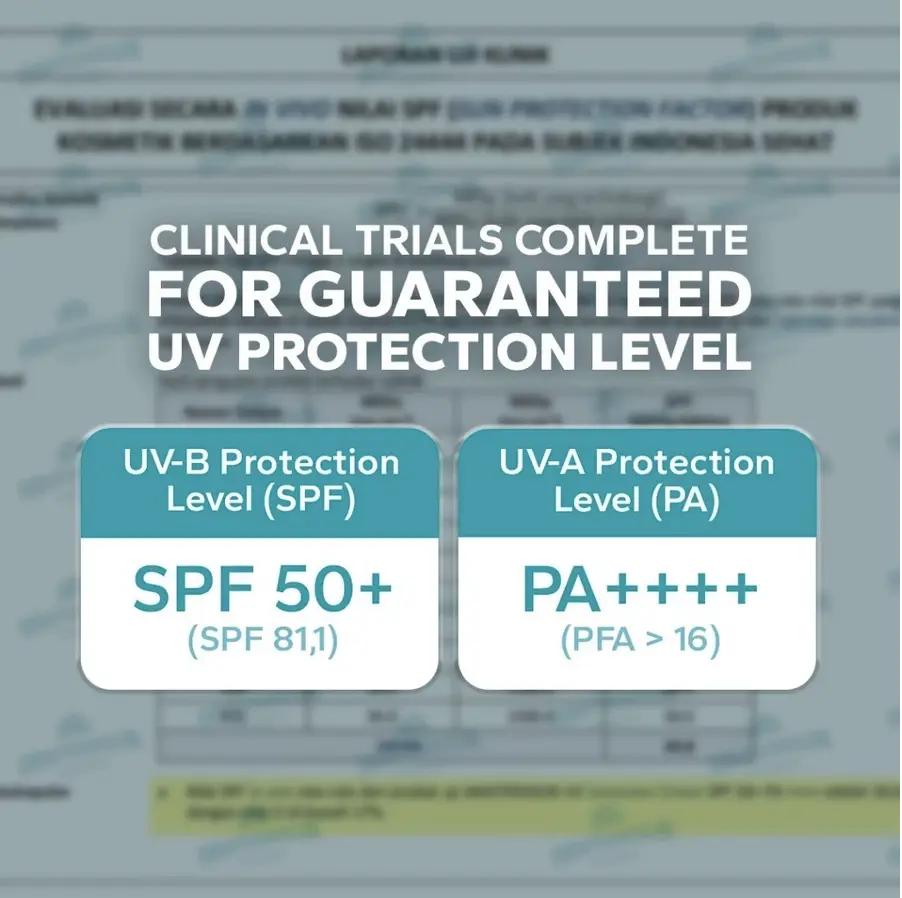 7-in-1 Protection: UVA, UVB, blue light, polusi, radikal bebas, penuaan dini dan kerusakan DNA* kulit.