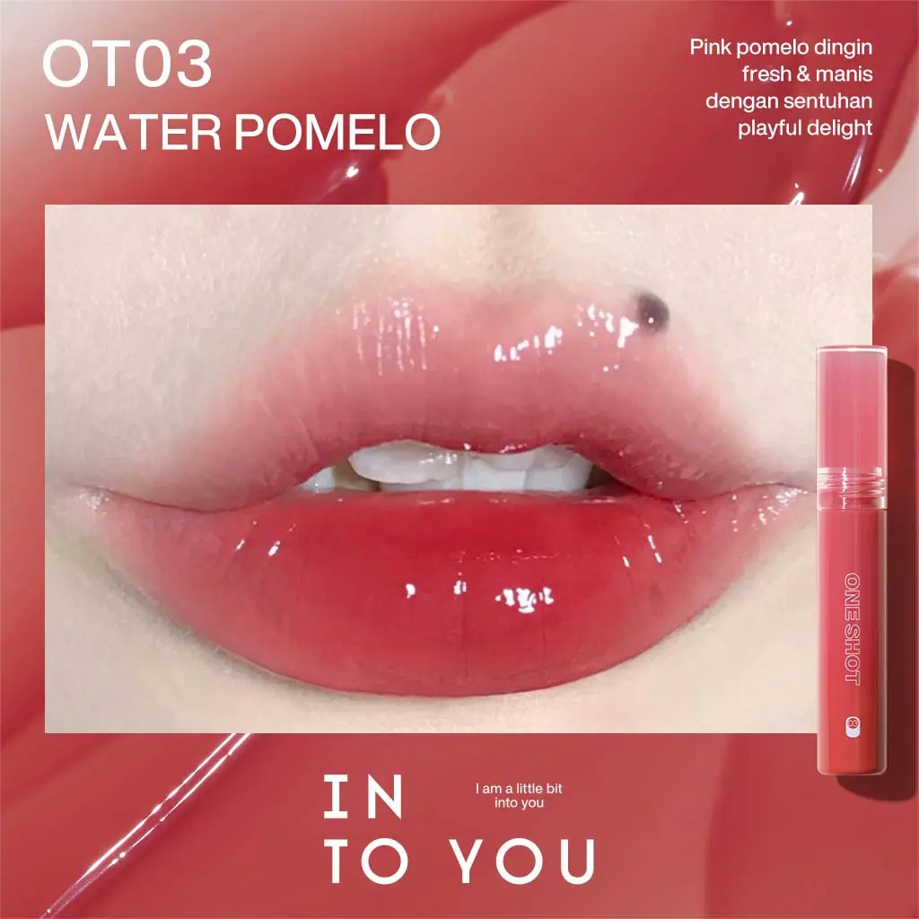 5. INTO YOU One Shot Lip Tint Glossy Water Finish Ringan Tahan Lama Tidak Transfer Bibir Lembap Natural