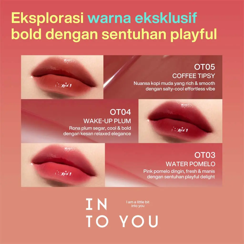 INTO YOU One Shot Lip Tint Glossy Water Finish Ringan Tahan Lama Tidak Transfer Bibir Lembap Natural