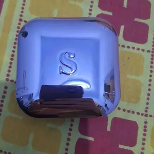 Swipe menggunakan sisi sponge (logo S), mulai dari bagian tengah ke arah luar wajah.
