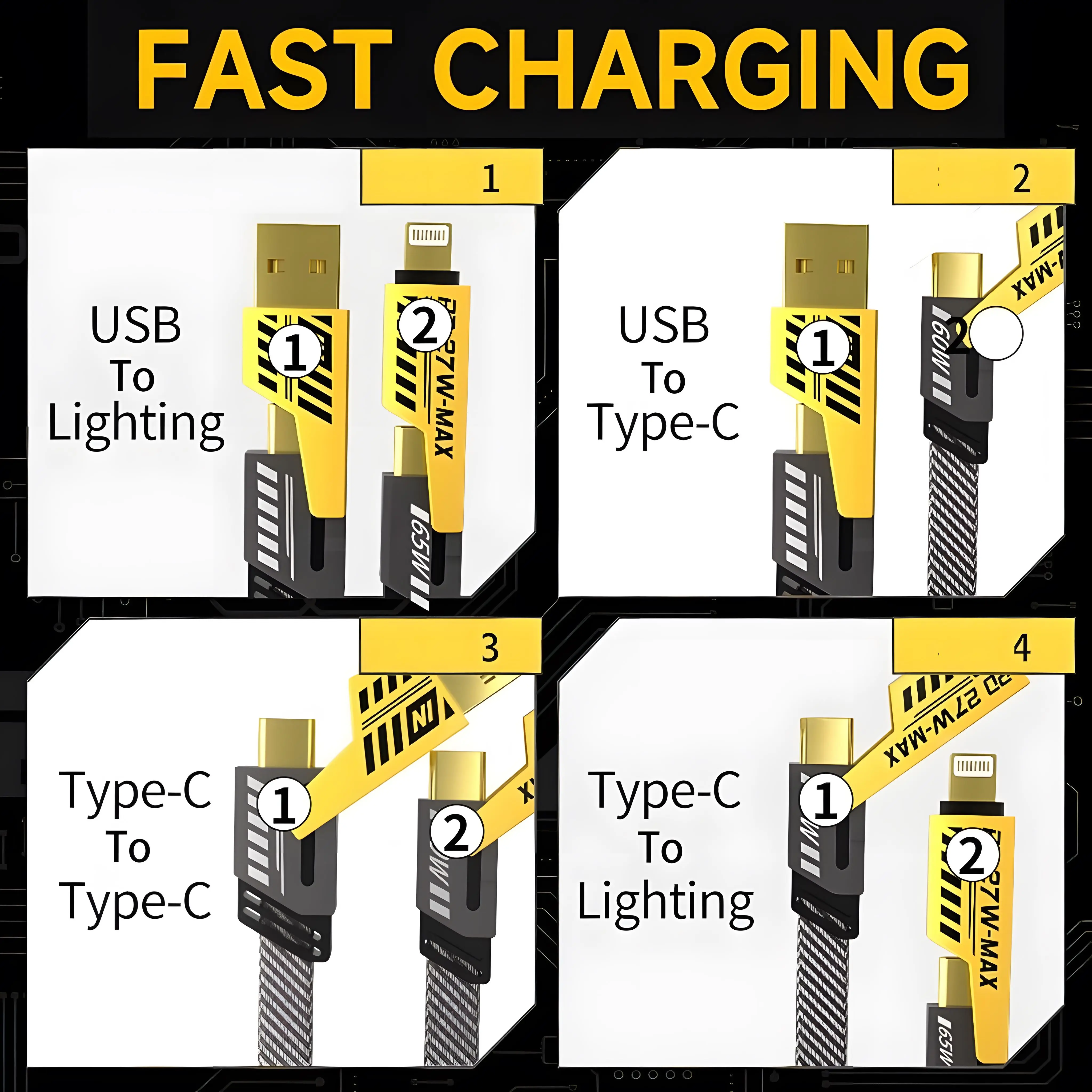 5. YIBAO LENTIVEN Kabel Data 4 in 1 Fast Charging HP Kabel Casan 4in1 Tipe C USB iOS Lightning USB PD27W