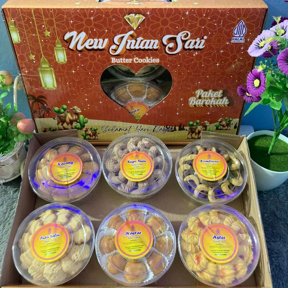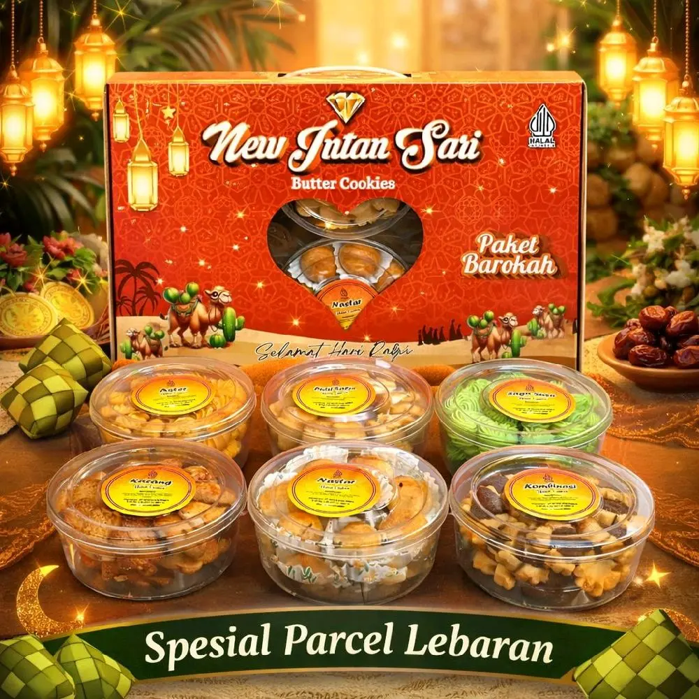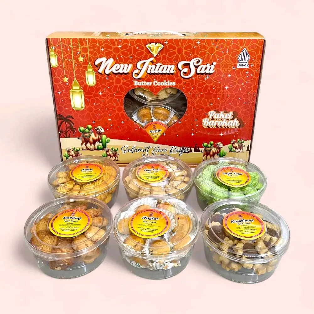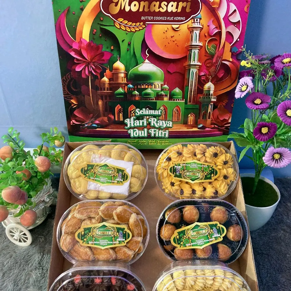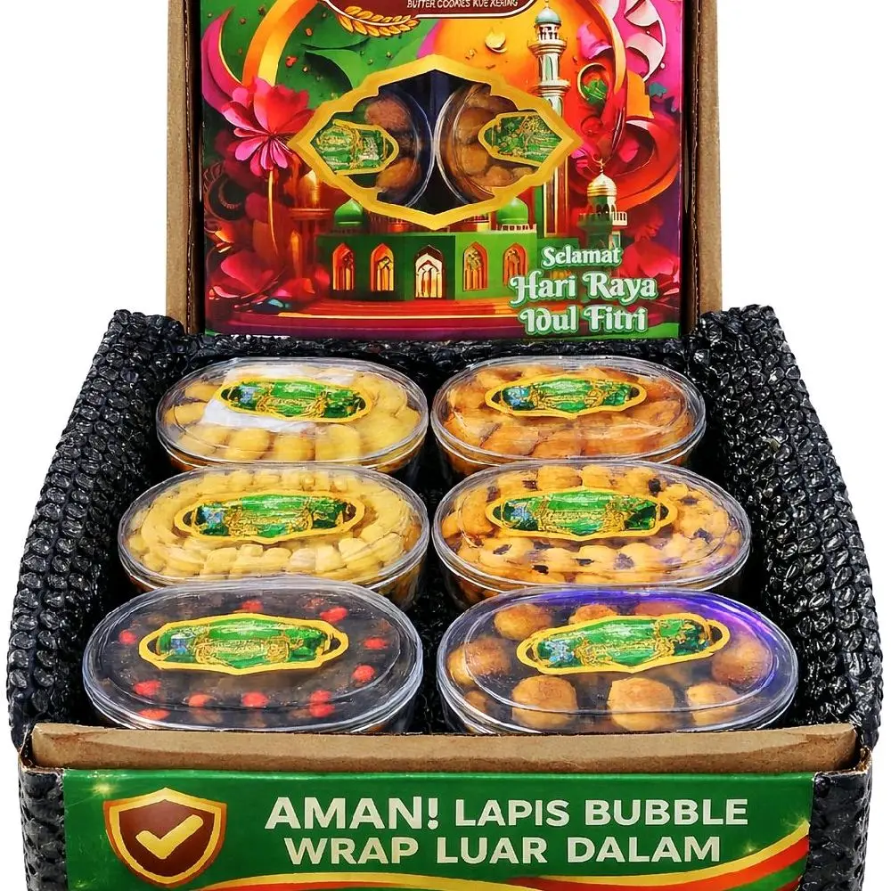 Rayakan momen Lebaran Idul Fitri dengan paket kue kering hampers isi 6 toples yang cocok untuk bingkisan keluarga, saudara, relasi, dan hadiah spesial. Dibuat dari bahan berkualitas, rasa enak, fresh, dan kemasan rapi.