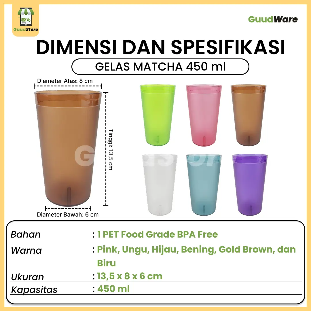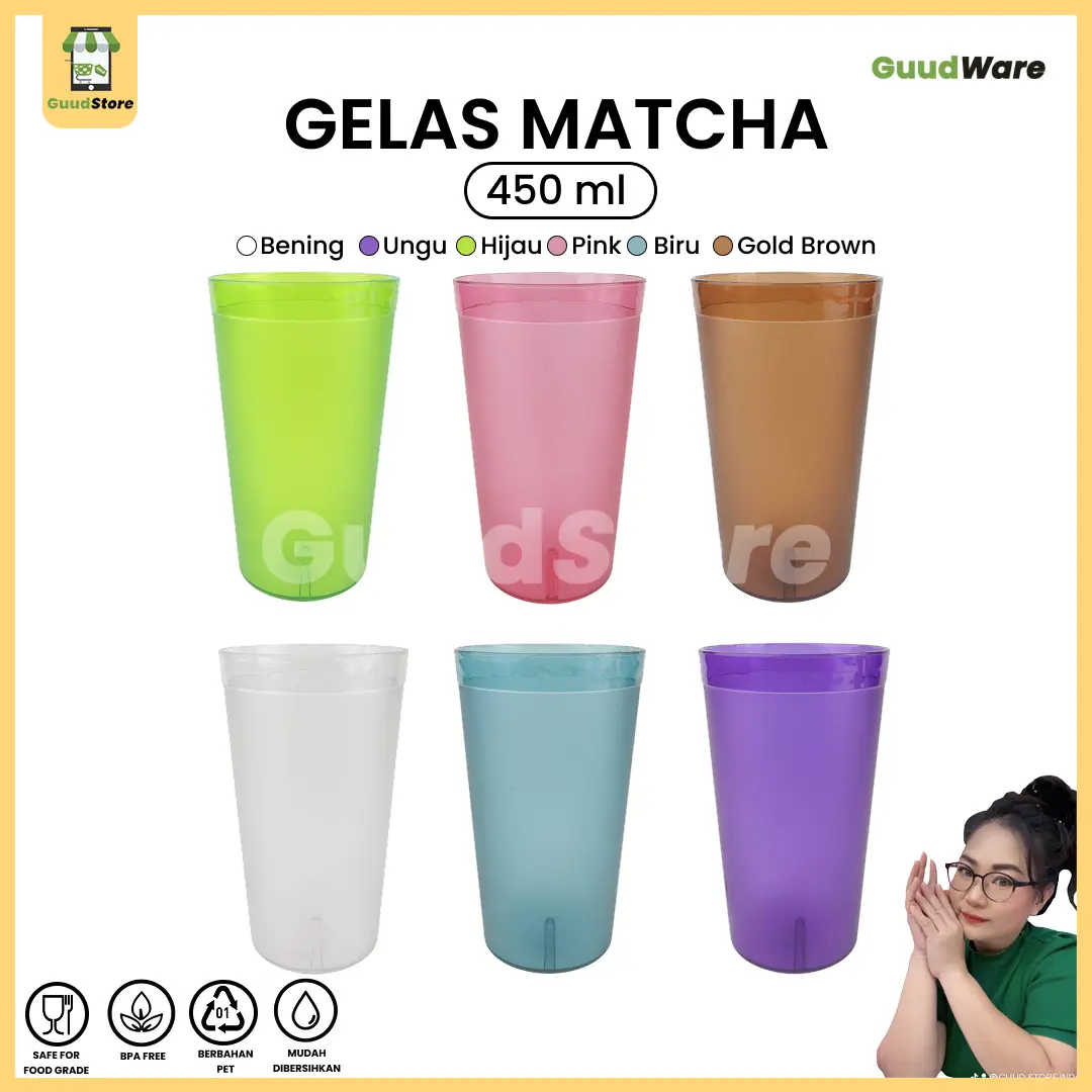 Gelas Matcha 450 ml Anti Pecah Food Grade BPA Free untuk Kebutuhan Rumah Tangga