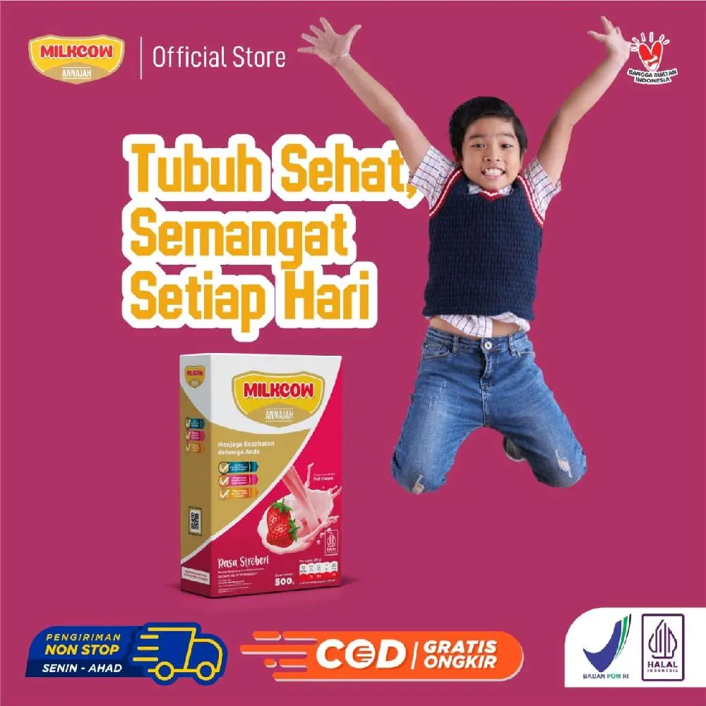 Dapatkan Susu Sapi MILKCOW 500gr untuk mendukung pertumbuhan dan kesehatan anak Anda.