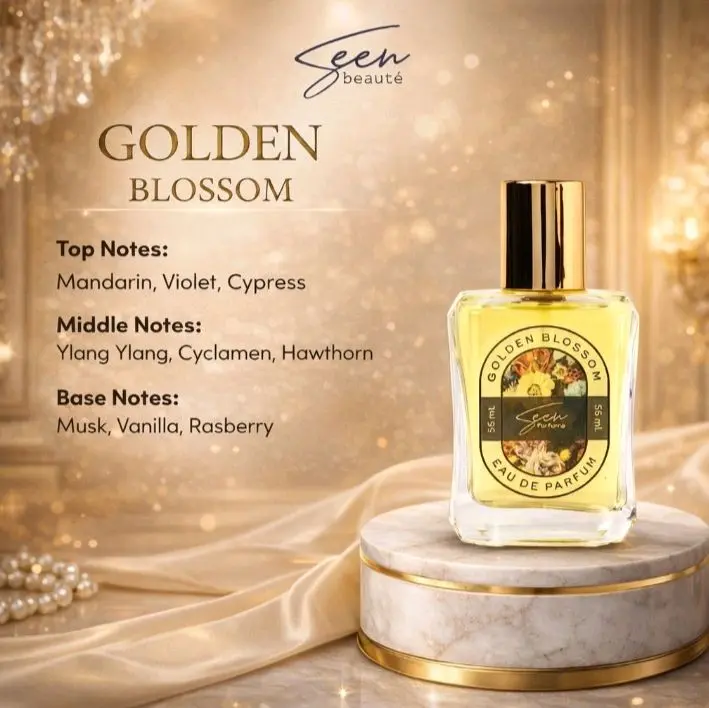 Golden Blossom bukan sekadar parfum, melainkan simbol keanggunan yang cerah — lembut, hangat, dan memancarkan pesona feminin yang alami.