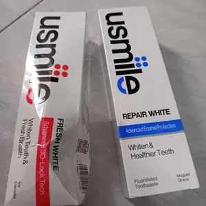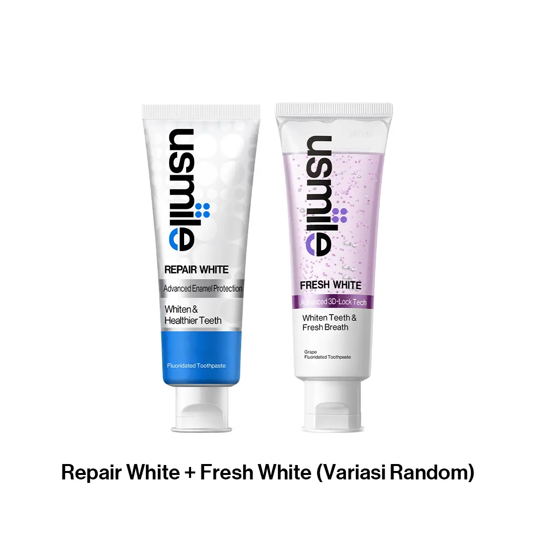 [Live] [Buat Gigi Sensitif] usmile Paket Oral Care Pasta Gigi Fresh White 110gr (Varian Random) & Repair White 100gr | Putih & Segar saat Siang Repair Enamel untuk Malam | Pemutih Gigi | Pasta Gigi Whitening | Nafas Segar | Gigi Sensitif