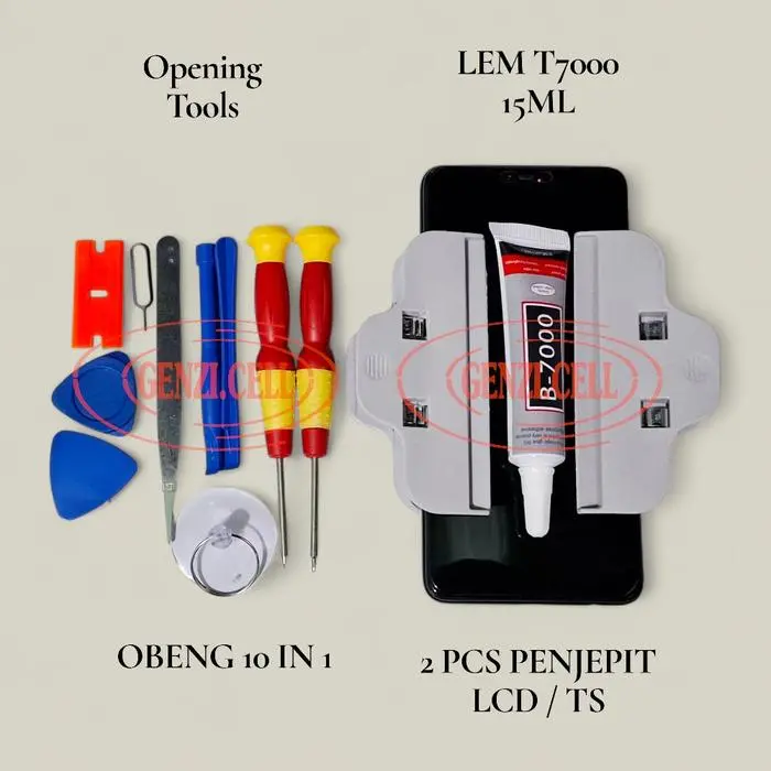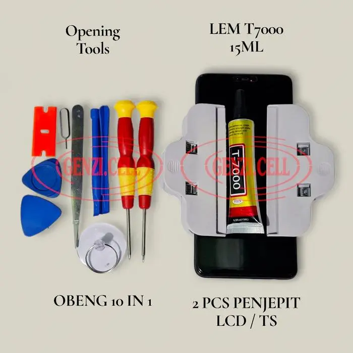 TERMURAH - OBENG SET HANDPHONE 1 IN 1 LEM T7 / B7 15ML 2 PCS PENJEPIT ALAT PASANG LCD TOUCHSCREEN / OPENING TOOLS
