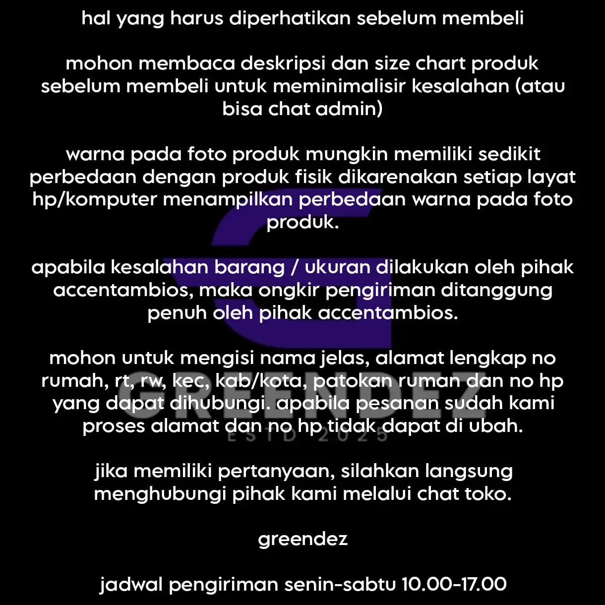·Libur: Tidak ada pengiriman Sabtu, Minggu, dan hari libur nasional. 🚫