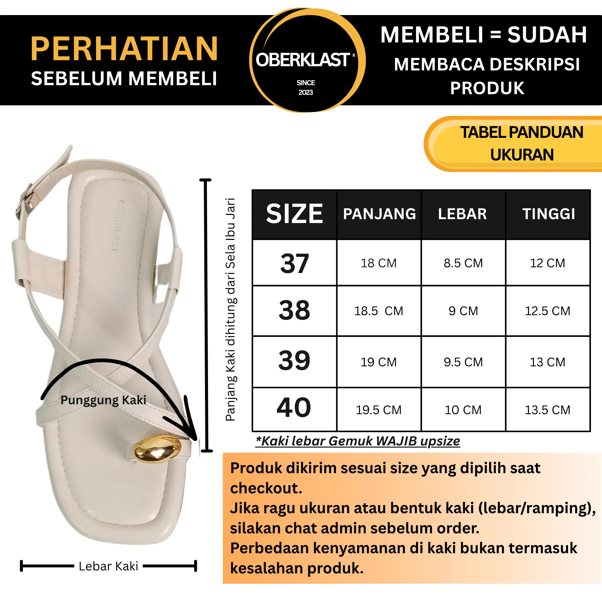 OBERKLAST Nami hadir dengan desain tali silang yang ramping dan aksen gold di bagian depan yang bikin tampilannya terlihat classy tanpa berlebihan.