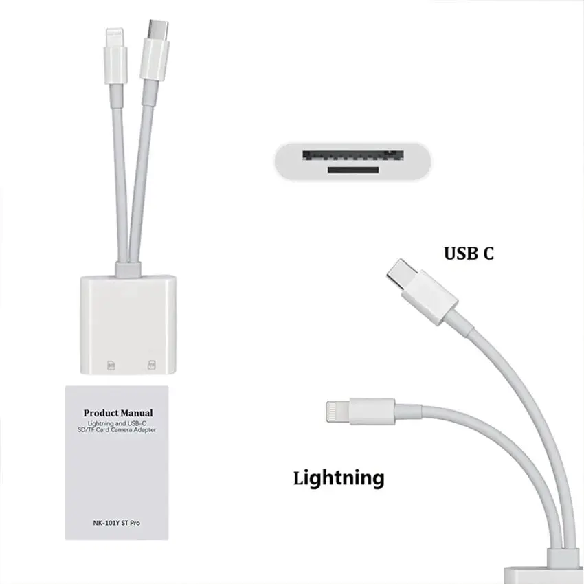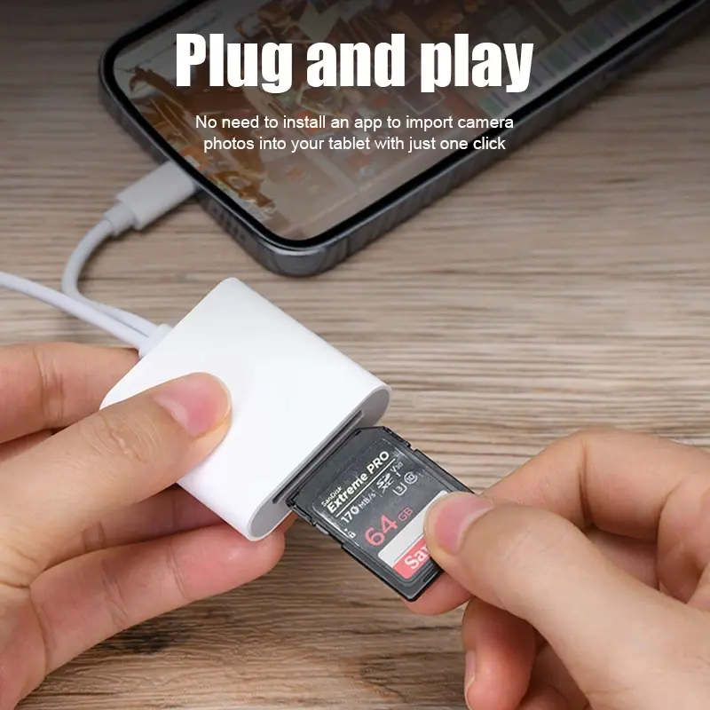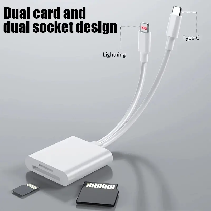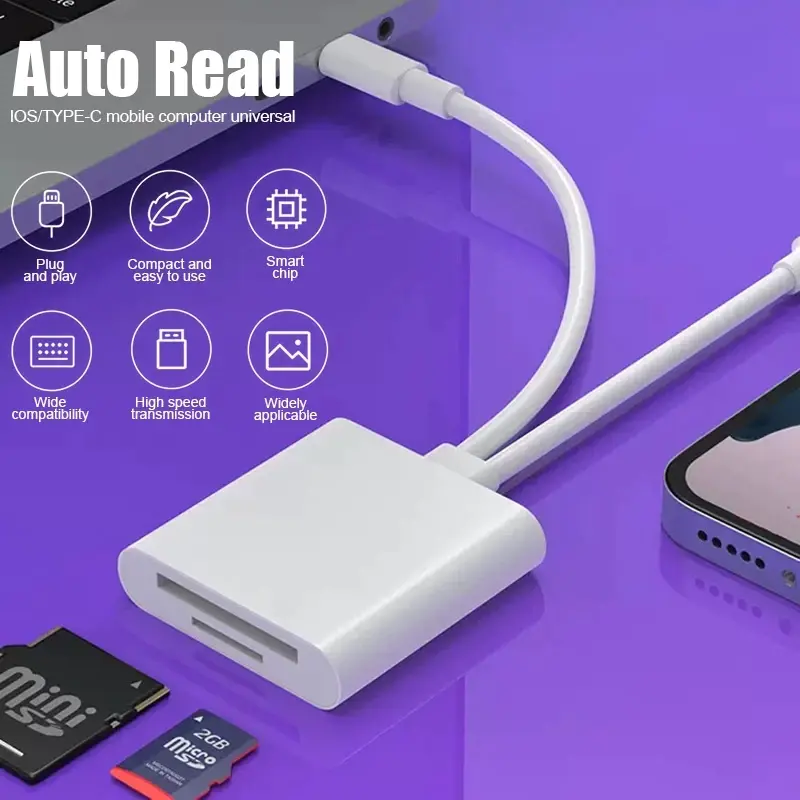 Desain: adaptor ini mengadopsi antarmuka dua dalam satu, dan antarmuka IP serta antarmuka Tipe C dapat menghubungkan kartu SD dan kartu TF. Oleh karena itu, ia dapat beradaptasi secara luas dengan berbagai antarmuka dan juga kompatibel dengan berbagai perangkat.