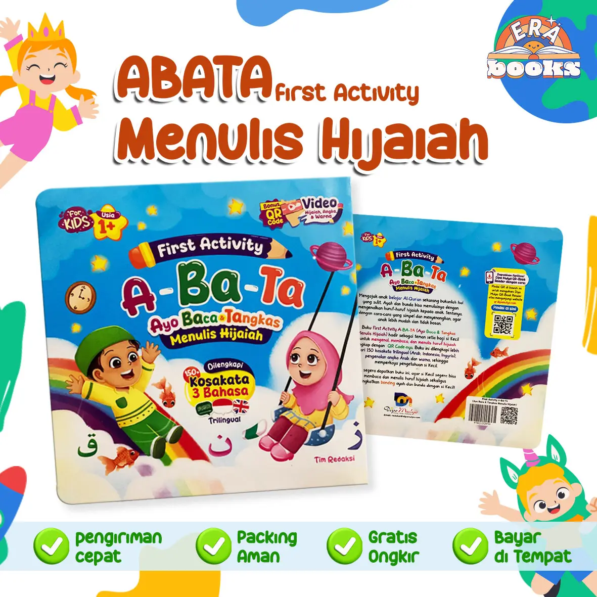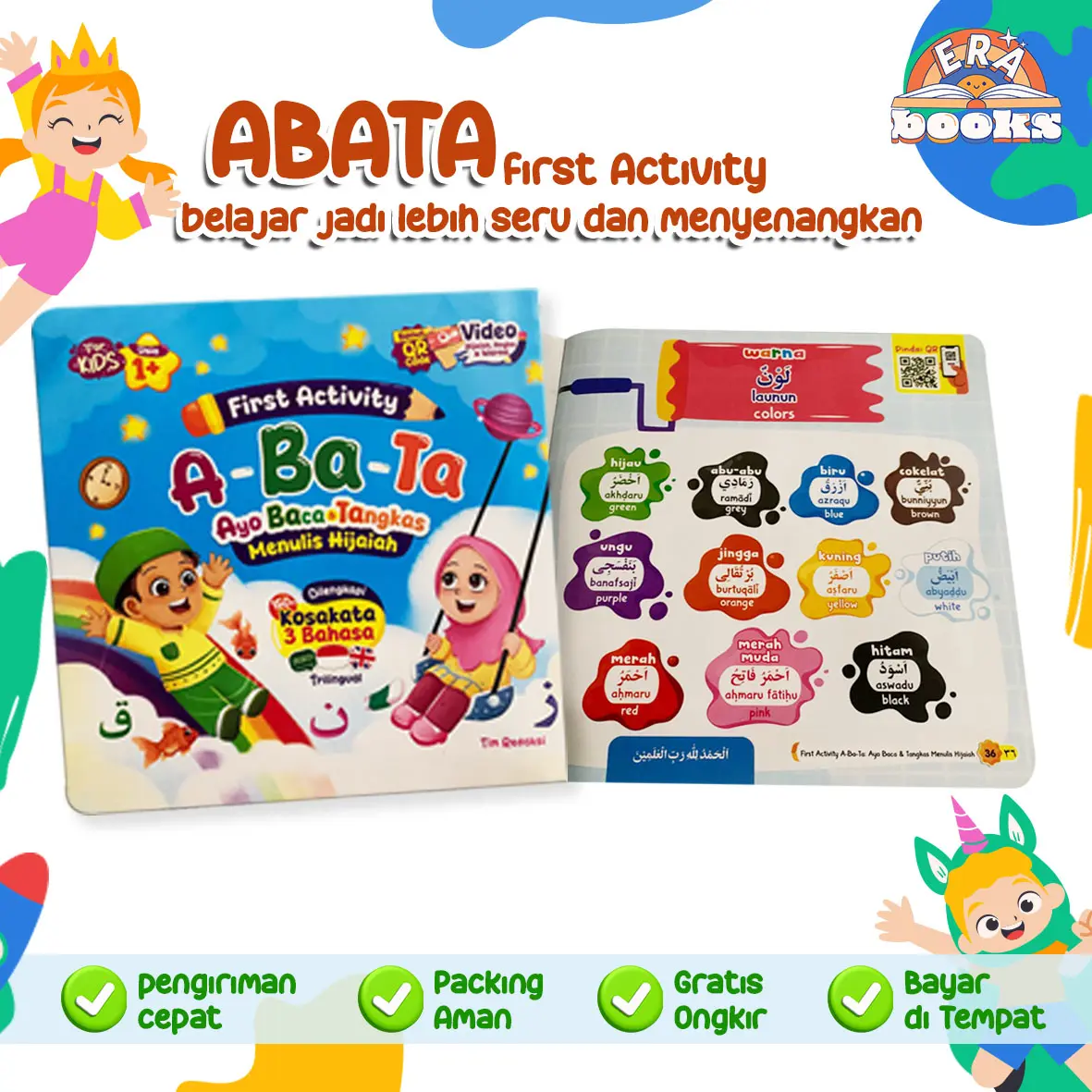 Keunggulan utama buku ini adalah pendekatan 3 bahasa (Arab – Indonesia – Inggris). Selain huruf hijaiyah, anak juga dikenalkan warna, angka, dan berhitung sederhana, sehingga pembelajaran menjadi lebih lengkap dalam satu buku.
