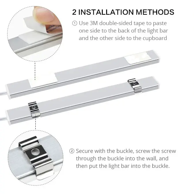 Lampu ini dapat digunakan untuk area yang membutuhkan penerangan khusus, seperti lemari baju, meja dapur, rak piring, dan sudut-sudut lainnya. Anda dapat memasangnya dengan mudah, baik menggunakan perekat maupun set baut dan bracket.