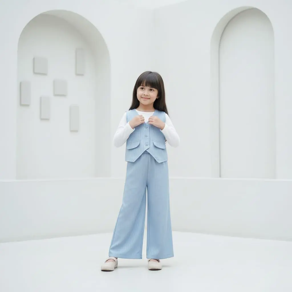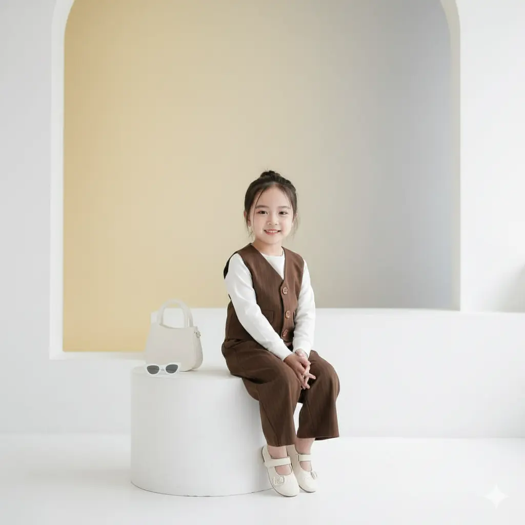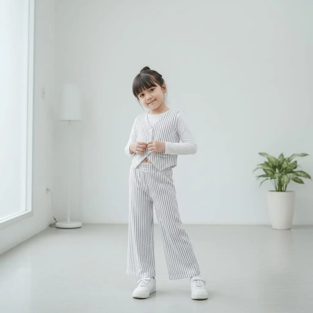 ·Gaya Korean Style: Dengan gaya Korean style, setelan ini memberikan tampilan yang modis dan menarik. Sesuai untuk anak-anak yang suka tampil cantik.