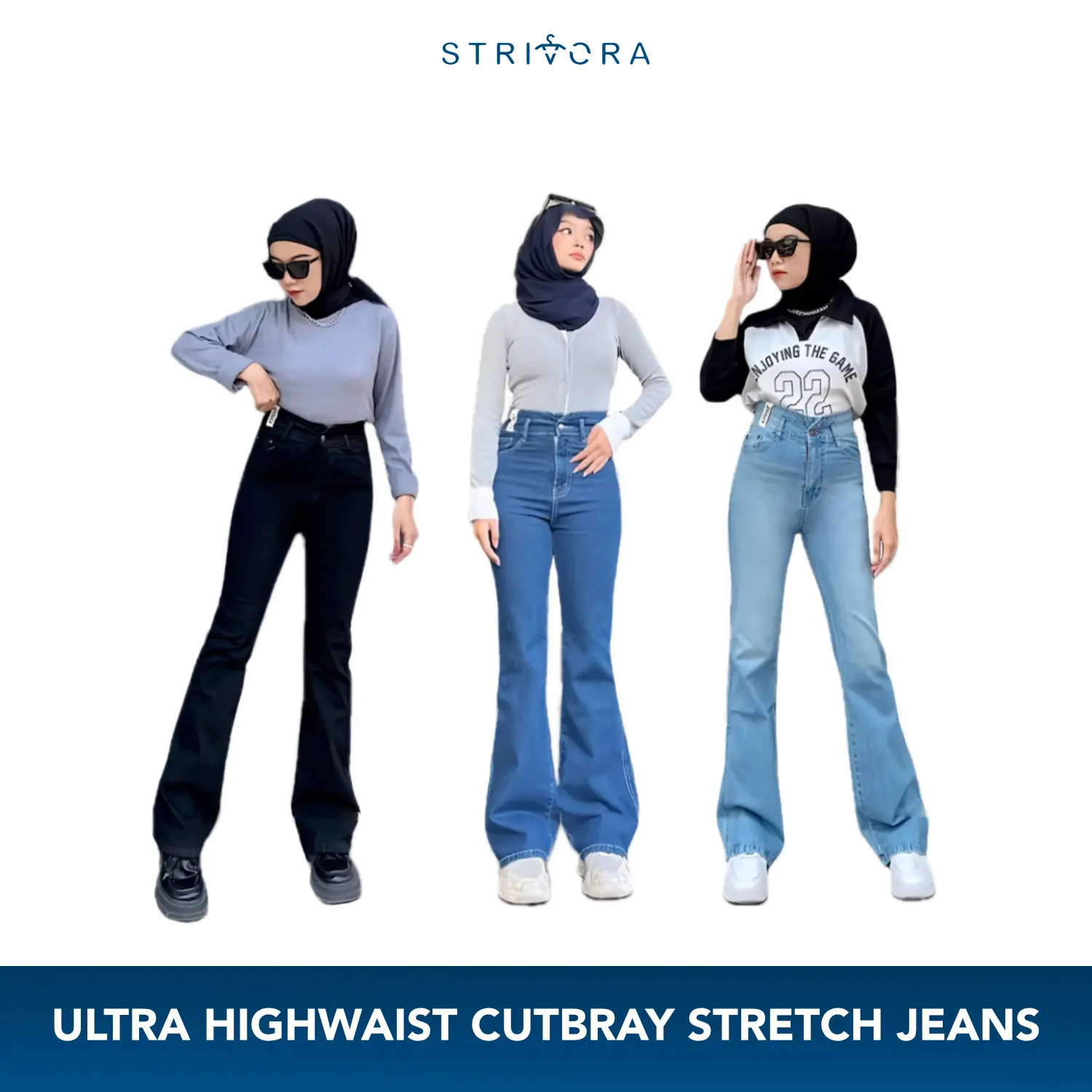 Looks yang bikin lebih jenjang dan auto slim hadir nih guys! STRIVORA Ultra Highwaist Cutbray stretch dengan 2 kancing yang pastinya bener2 highwaist dan nyaman dipakai, JINISO Active Jeans untuk segala aktivitasmu!