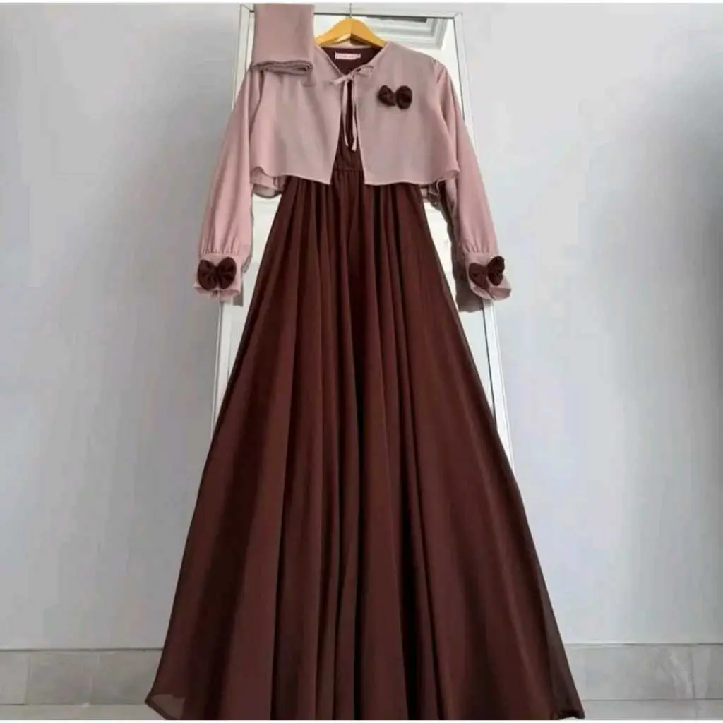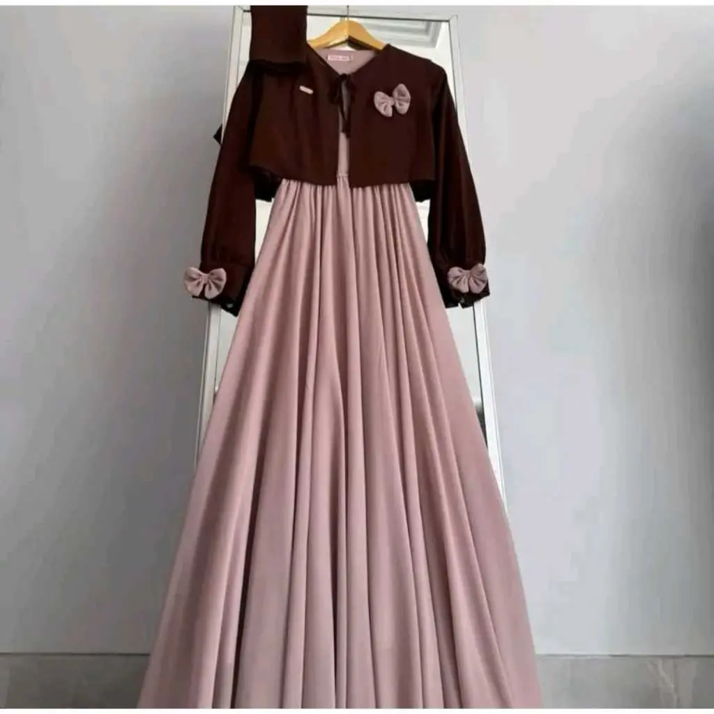 5. Promofalisha dress gamis rompi terbaru masah kinih bahan ceruty baby doll mix pita setelan gamis masah kinih