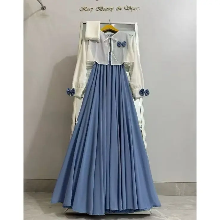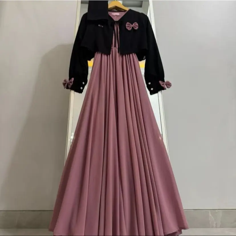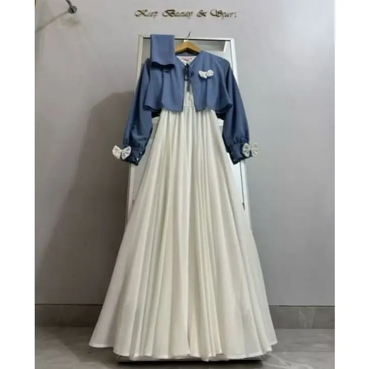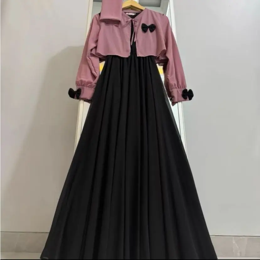 Promofalisha dress gamis rompi terbaru masah kinih bahan ceruty baby doll mix pita setelan gamis masah kinih