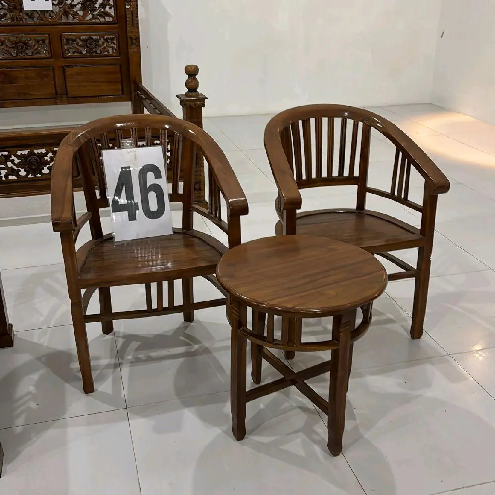 Kursi Teras 2 Kursi + Meja Bundar Jati model america