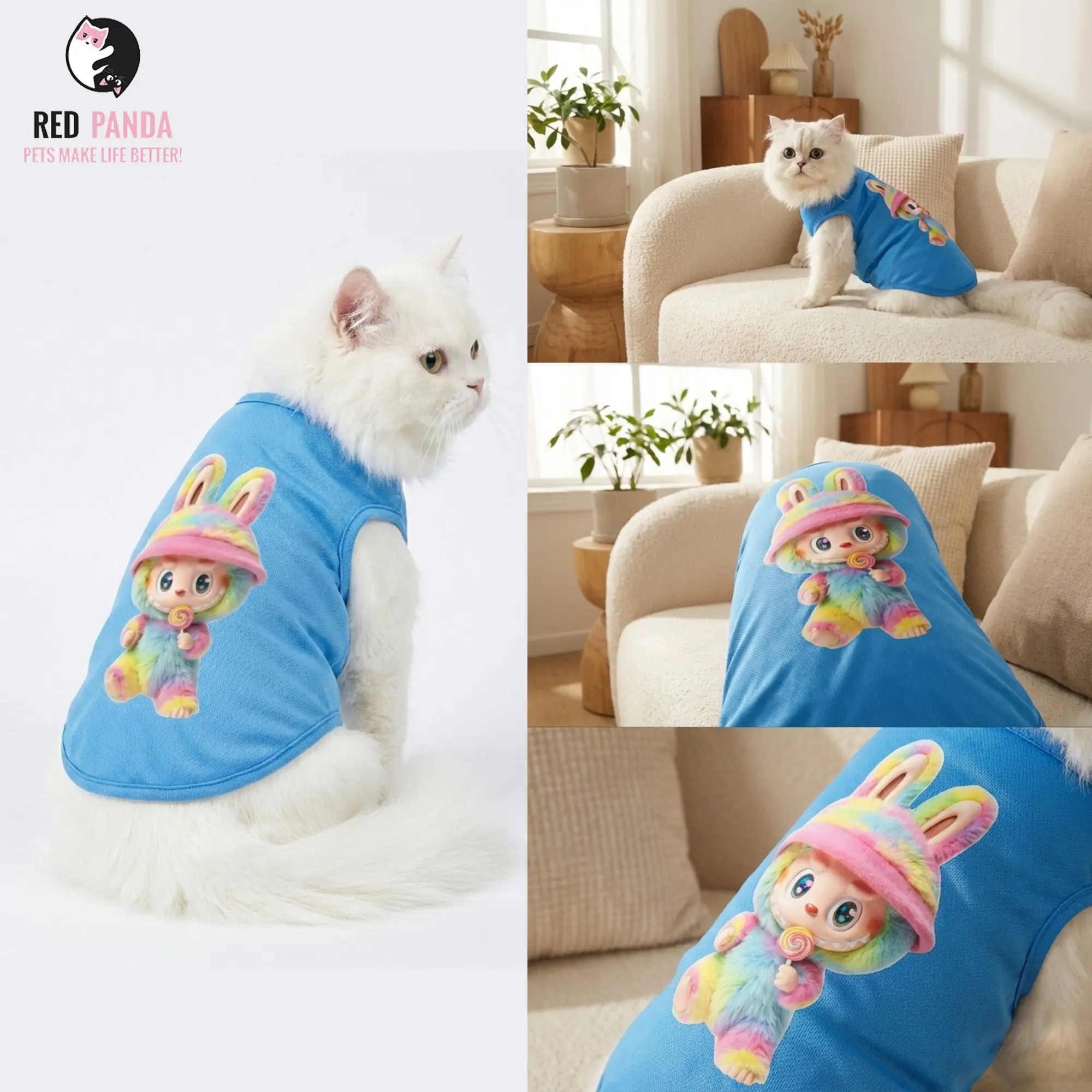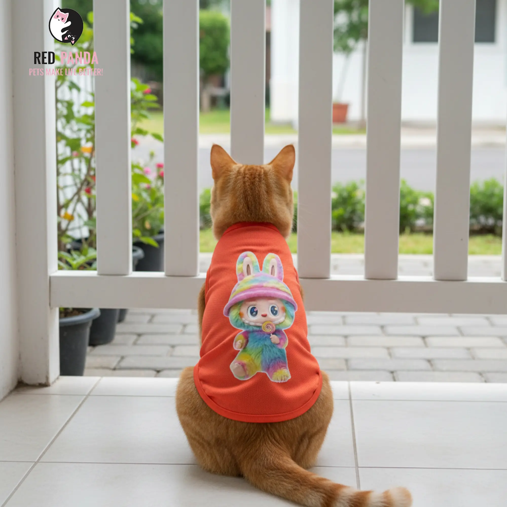 Baju kucing dengan desain karakter bunny rainbow yang lucu dan menarik, cocok untuk membuat tampilan anabul lebih stylish dan menggemaskan. Nyaman dipakai untuk aktivitas harian maupun foto konten sosial media.