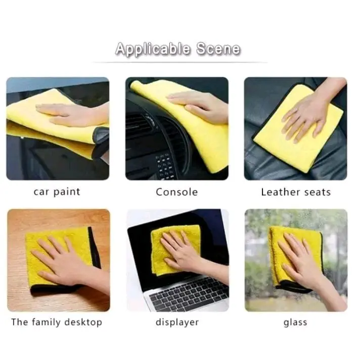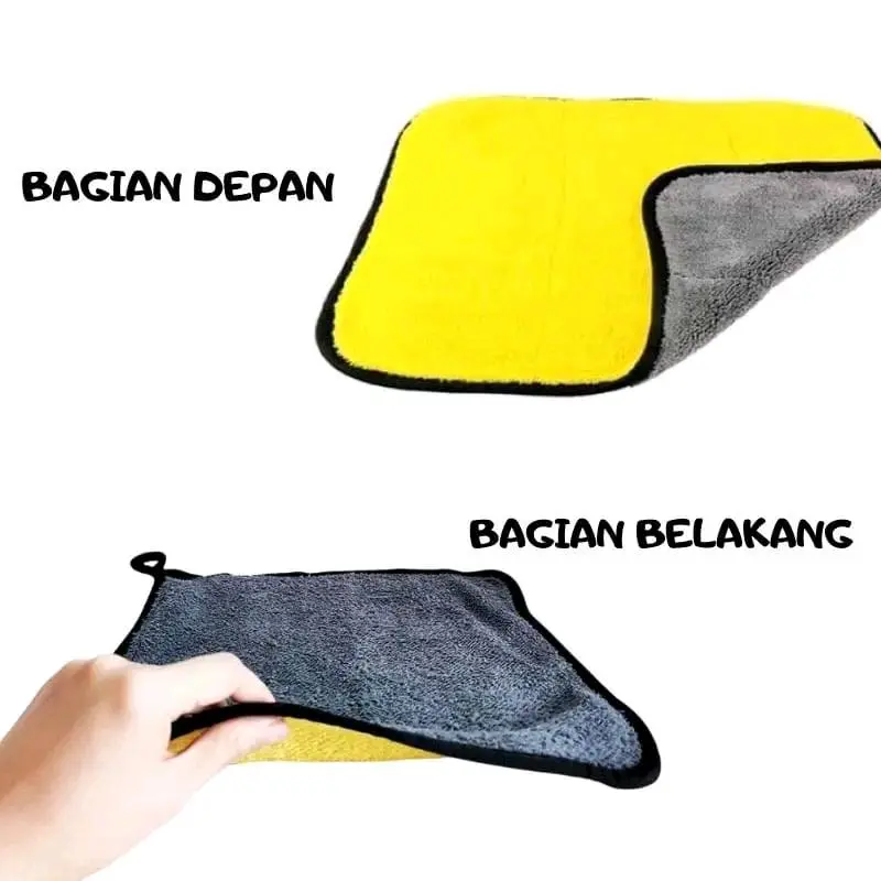 Ready Kain Lap Microfiber Serbaguna 2 sisi multifungsi Kain lap dengan bahan microfiber yang sangat tebal, berpori-pori sangat rapat. Sangat mudah digunakan, menyerap air dan membersihkan kotoran yang menempel tanpa mengores permukaan. Sangat cocok untuk membersihkan permukaaan mobil, motor, pegangan tangga stainless, dan lainnya.