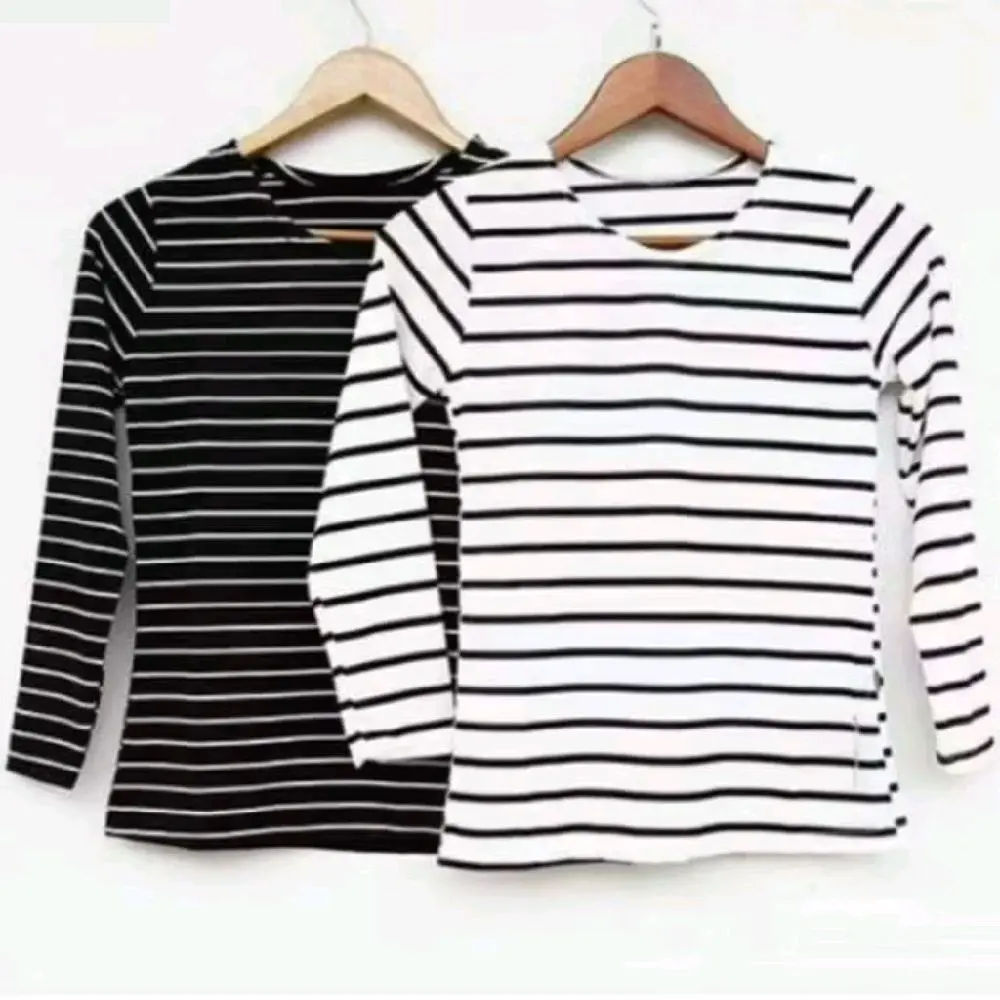 Pilih kaos salur stripe wanita lengan panjang model terbaru untuk tampilan yang segar dan modis.