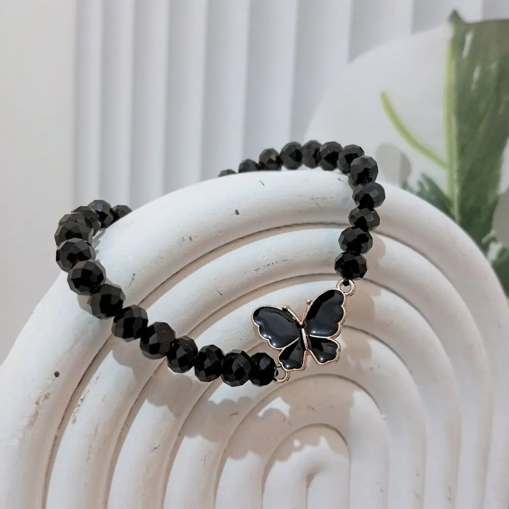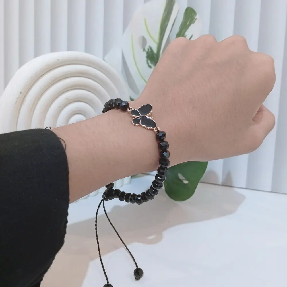 Gelang kristal kupu-kupu ini memancarkan pesona anggun dan feminin dalam setiap detailnya.