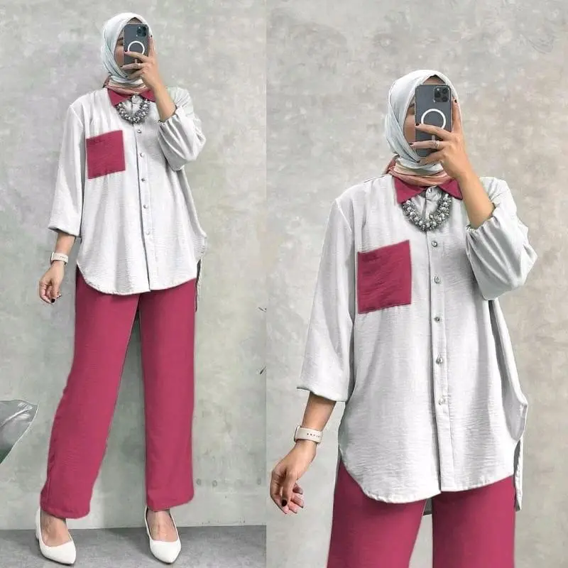 ·Desain Elegan: Setelan kemeja wanita ini dilengkapi dengan kantong crinkle yang memberikan tampilan yang menarik. Cocok untuk berbagai kesempatan. 🌟