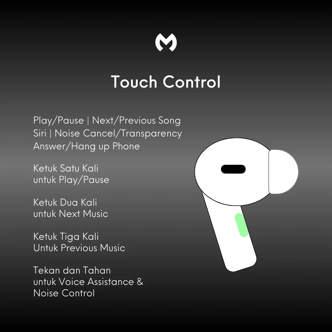 β’ Touch-sensitive controls on the earbud