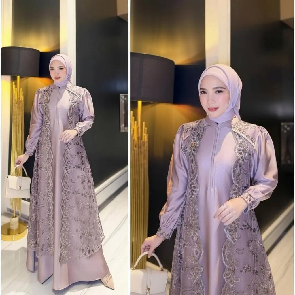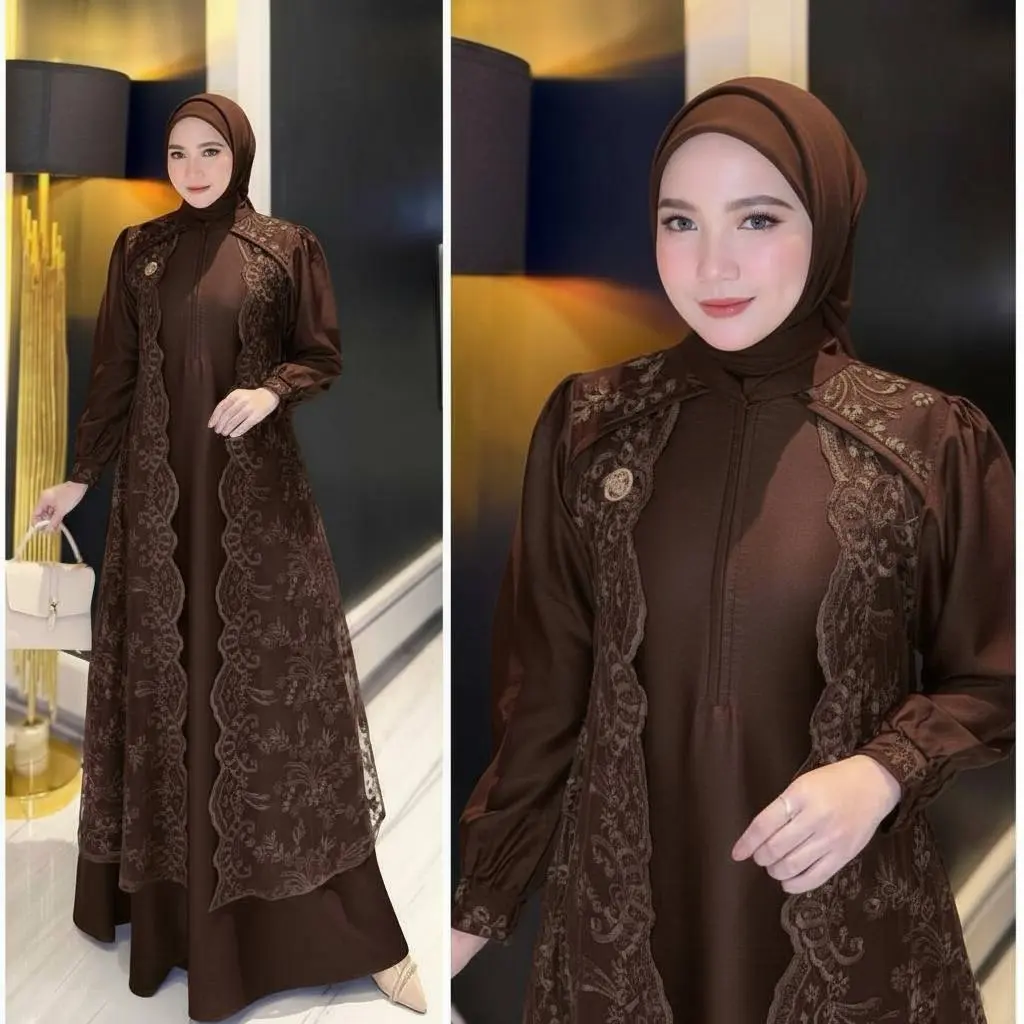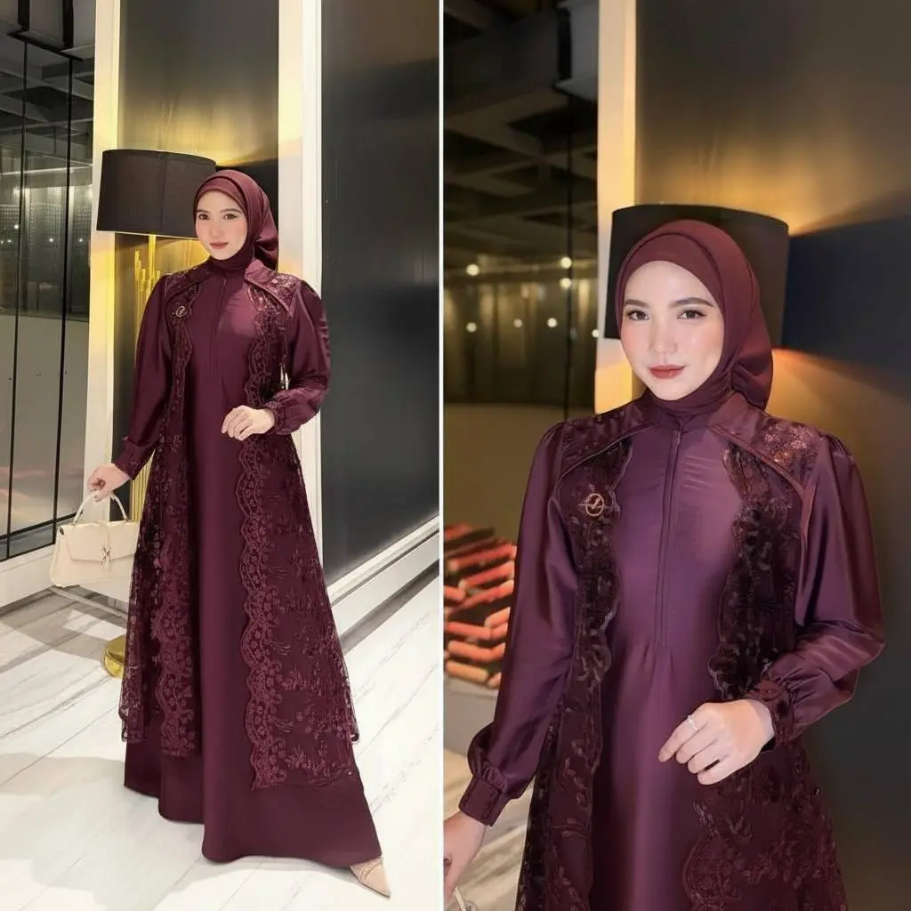 Devita Dress Brokat Gamis Kondangan Wanita Dewasa Jumbo Velvet Silky A-Line Formal Elegan