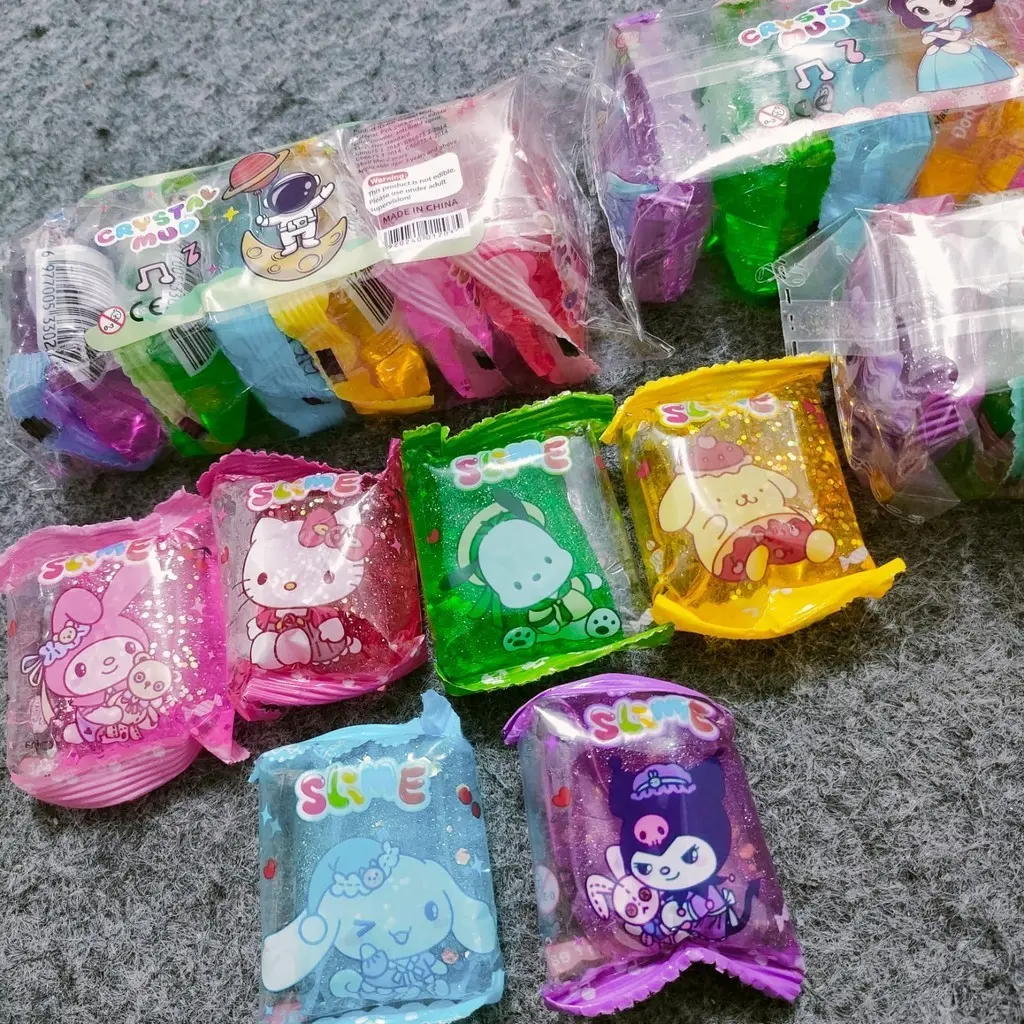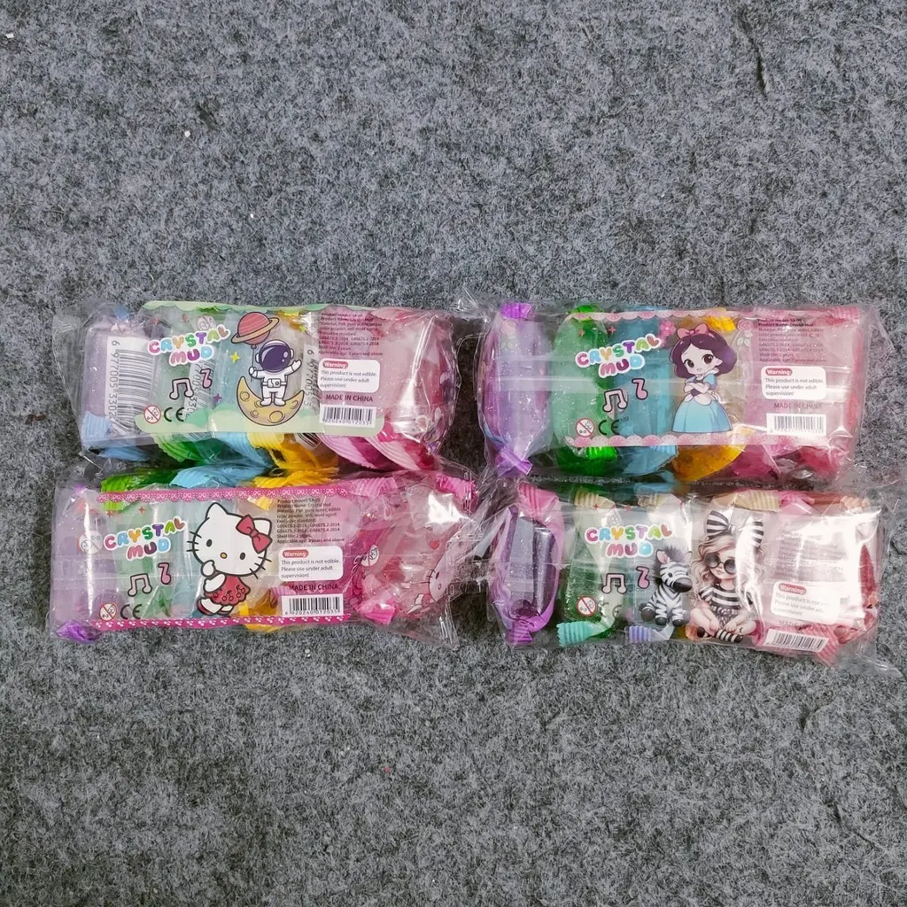 5 PACK ISI 30 PCS SLIME PACK CRYSTAL MUD MAINAN ANAK IMPORT 6 WARNA MOTIF SANRIO, PRINCESS, ASTRONO, DLL.