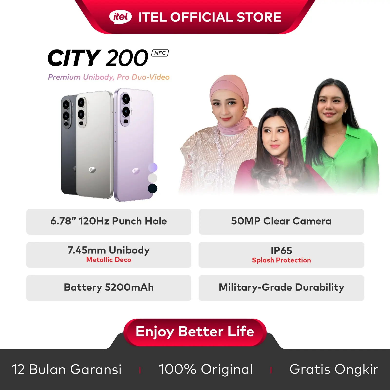 Fitur NFC memudahkan transaksi digital dan akses harian, sementara UltraLink Free Call hingga 2km memastikan komunikasi tetap lancar tanpa jaringan seluler. Dipadukan dengan DTS Audio, 4.5G Network, dan jaminan kelancaran hingga 48 bulan, itel City 200 adalah pilihan ideal untuk gaya hidup aktif dan modern.