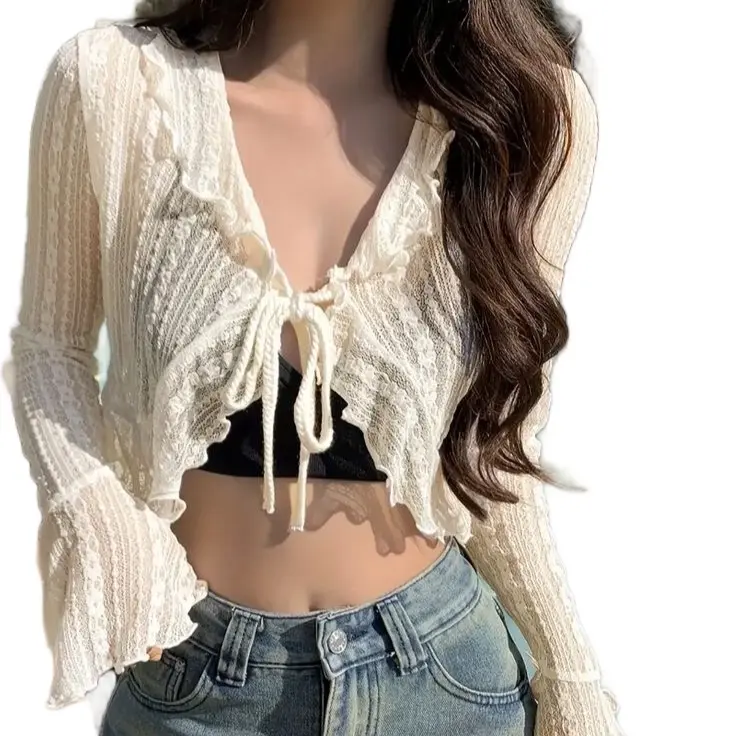 .1~100. Auntie lily outer lace wanita remaja dan dewasa Panjang Crop Atasan