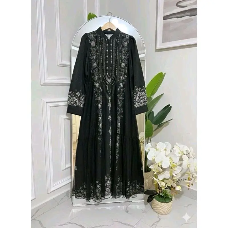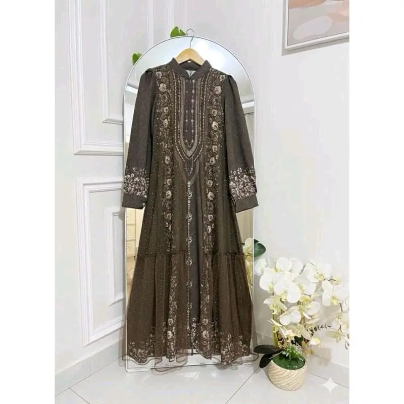 Dress Muslimah terbaru dari FHM LUXURY Terbuat dari bahan Katun Mesir Printing Exclusive dengan tile cantik. Pilihan tepat untuk tampil mewah dan elegan.