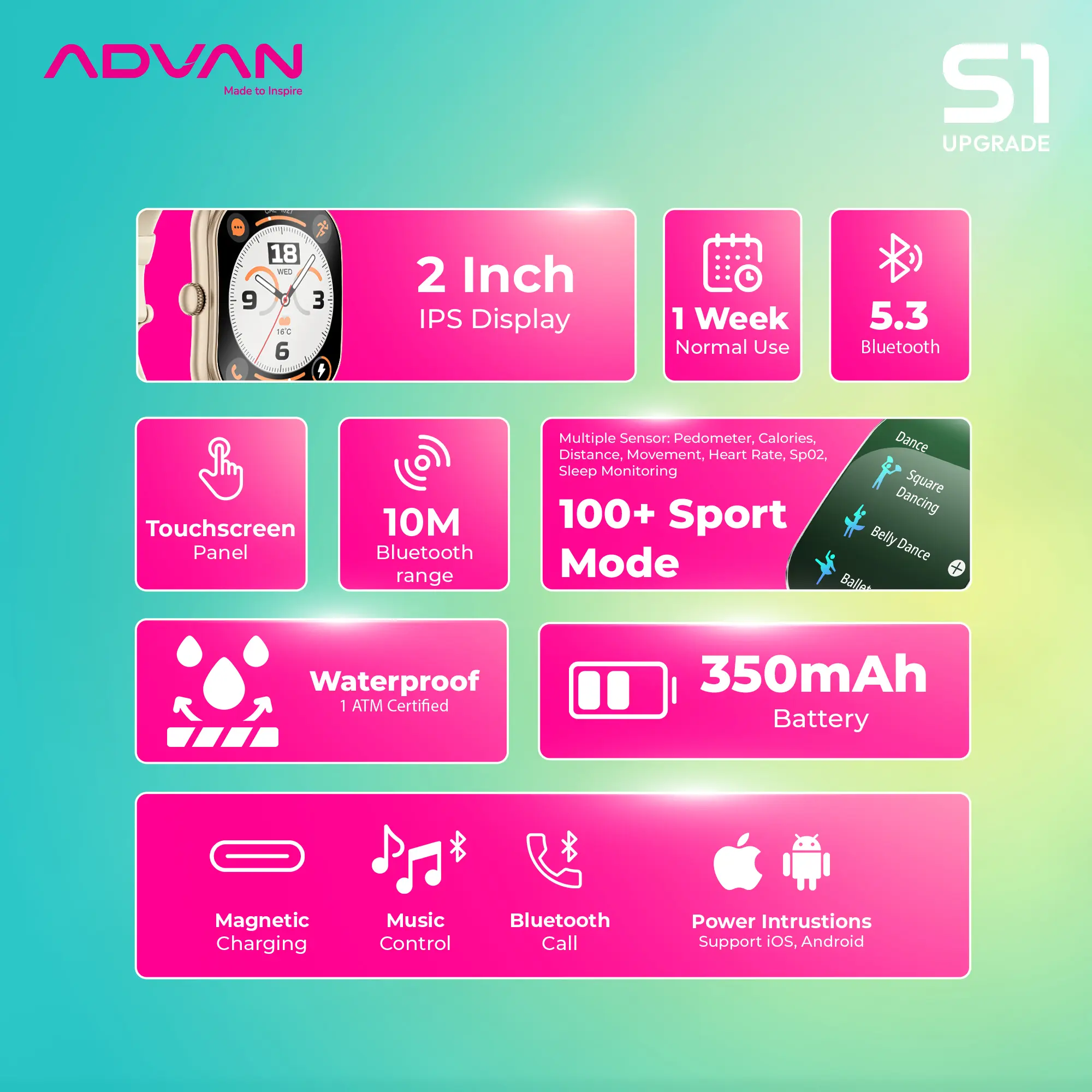 Fitur ADVAN Smartwatch S1 V2 :